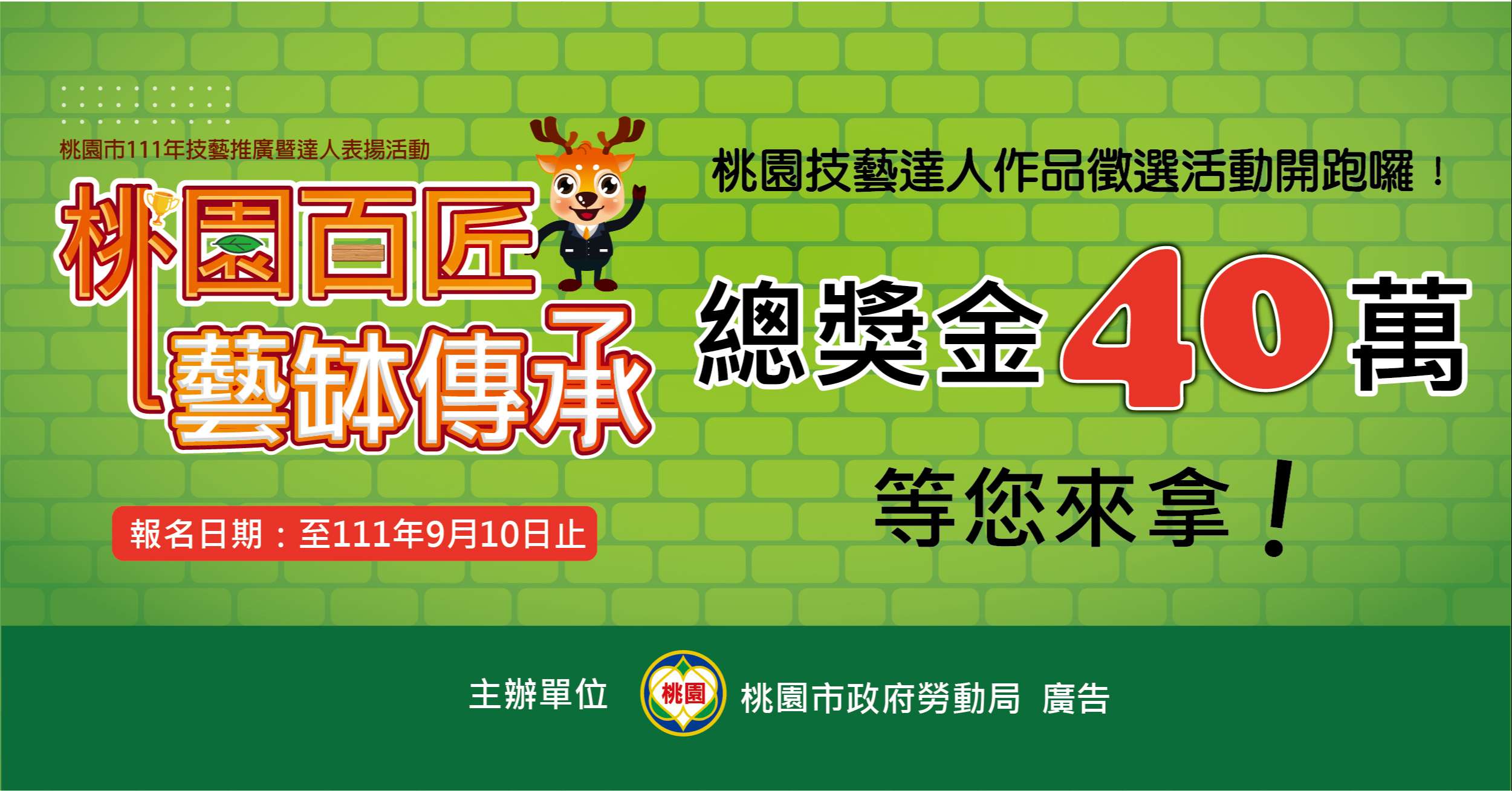 一、111年「桃園百匠 藝缽傳承」活動訊息,請貴單位協助刊登於貴單位所屬網站,相關資訊(含:報名簡章及報名表單)請至活動官網查詢。