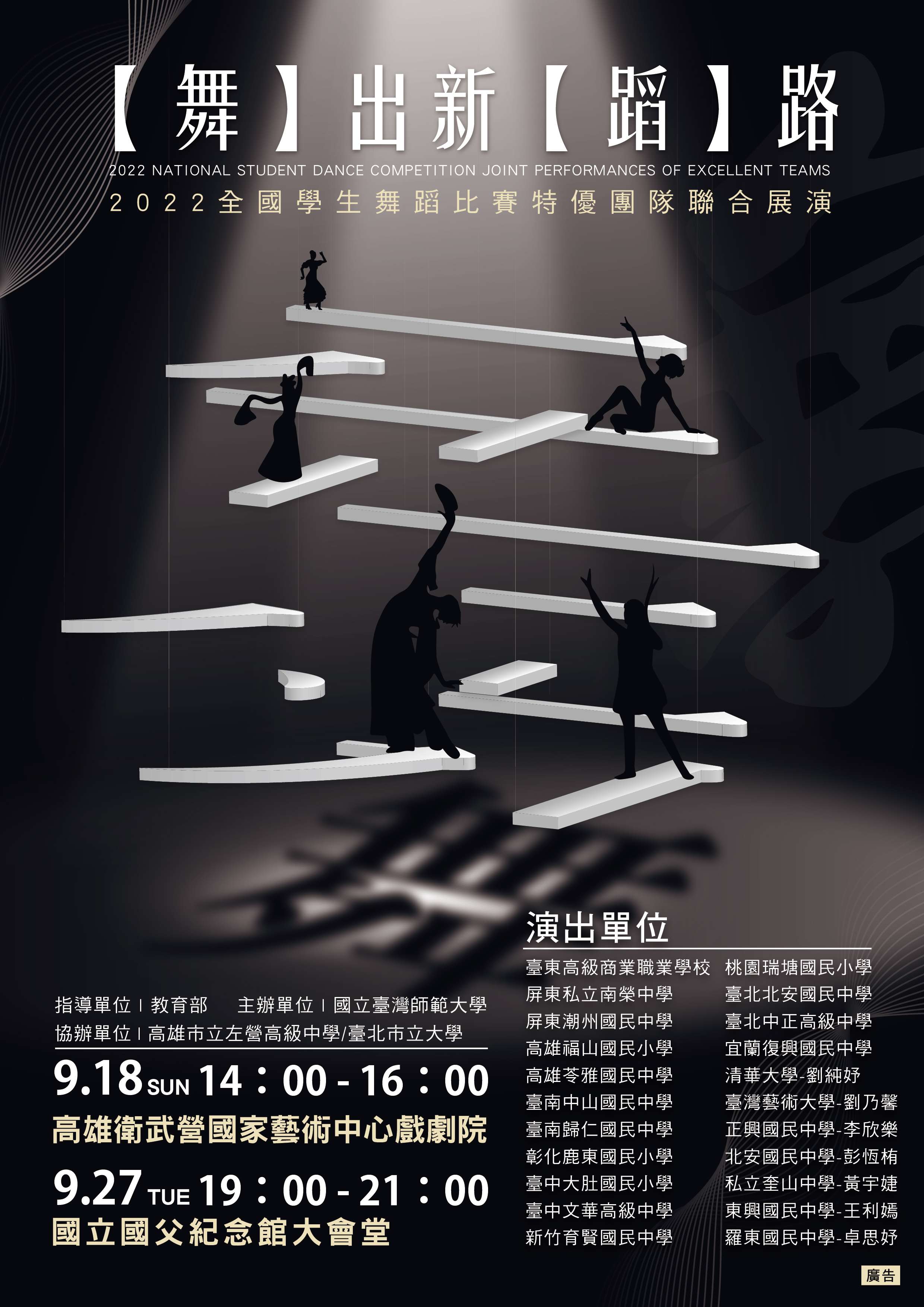 二、教育部為提供成績優異隊伍演出之舞臺及交流觀摩之機會,本年度特規劃辦理旨揭活動,擇優邀請111學年度全國學生舞蹈比賽特優團隊或個人參與演出,希推廣校園舞蹈教育。