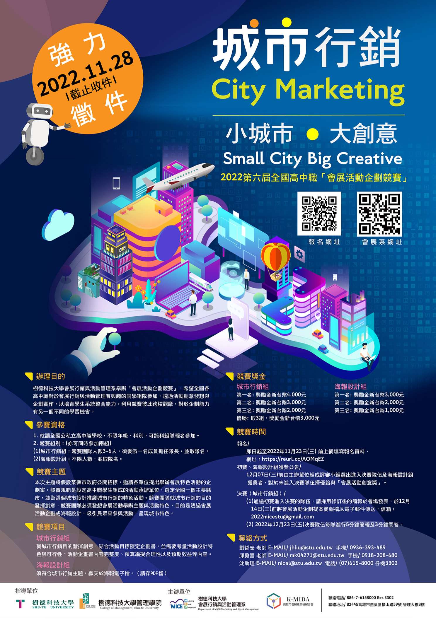 一、2022第六屆全國高中職會展活動企劃競賽報名截止日期:2022年11月30日(三)止 。