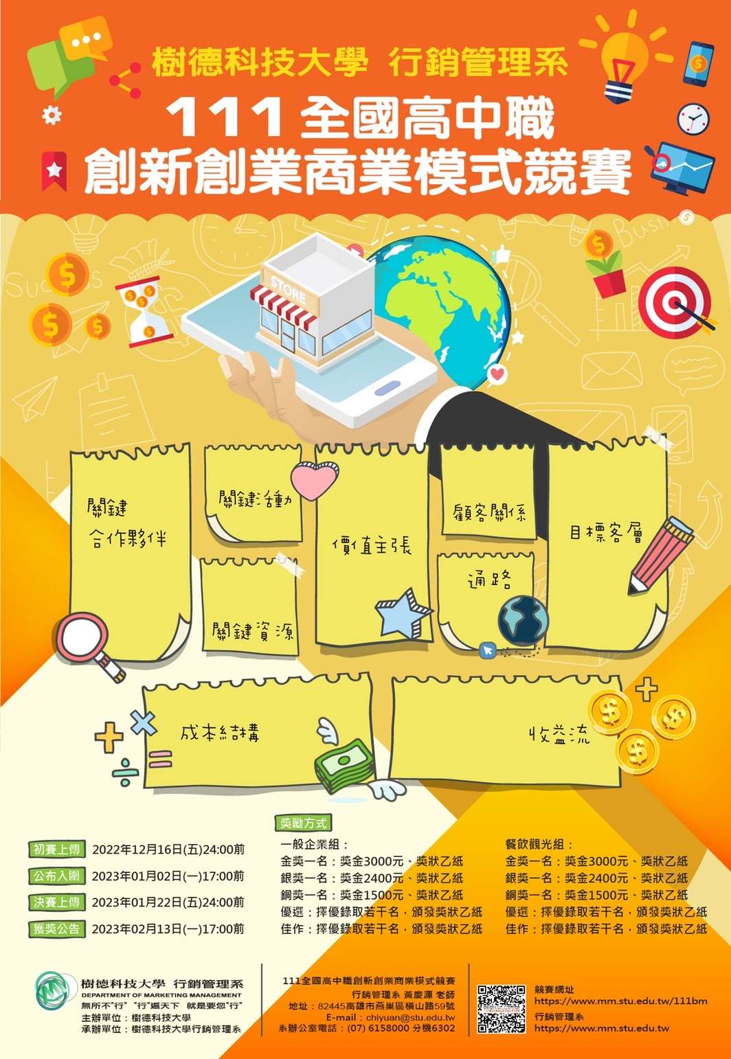 二、檢附「111學年全國高中職創新創業商業模式競賽」活動海報及實施辦法。