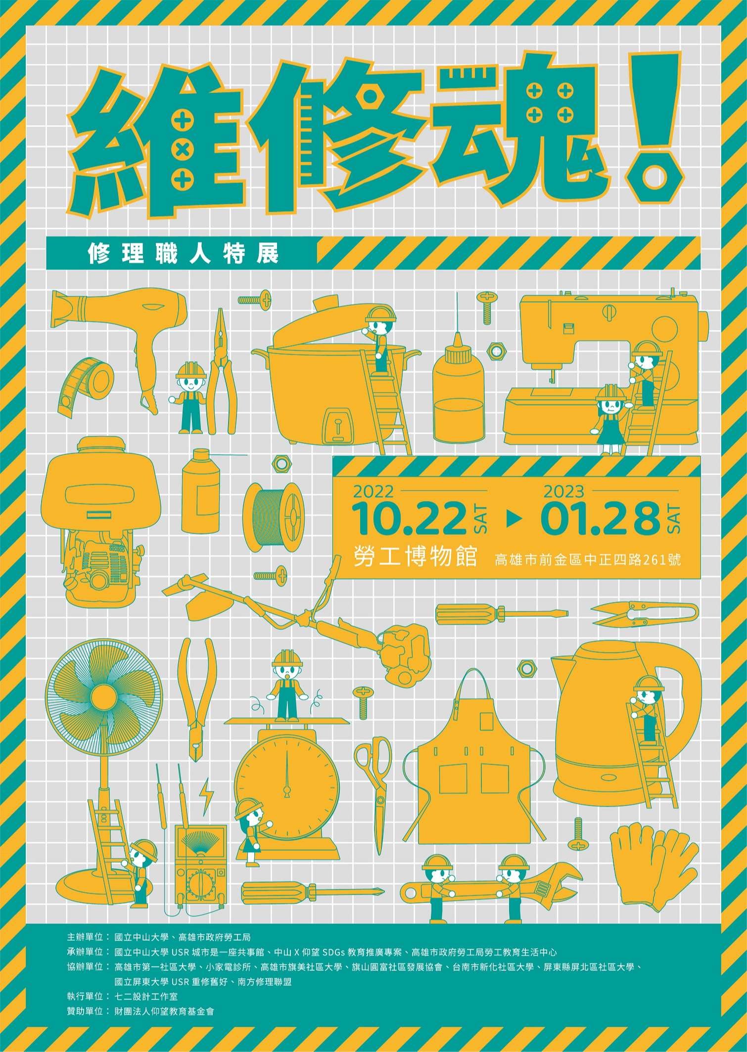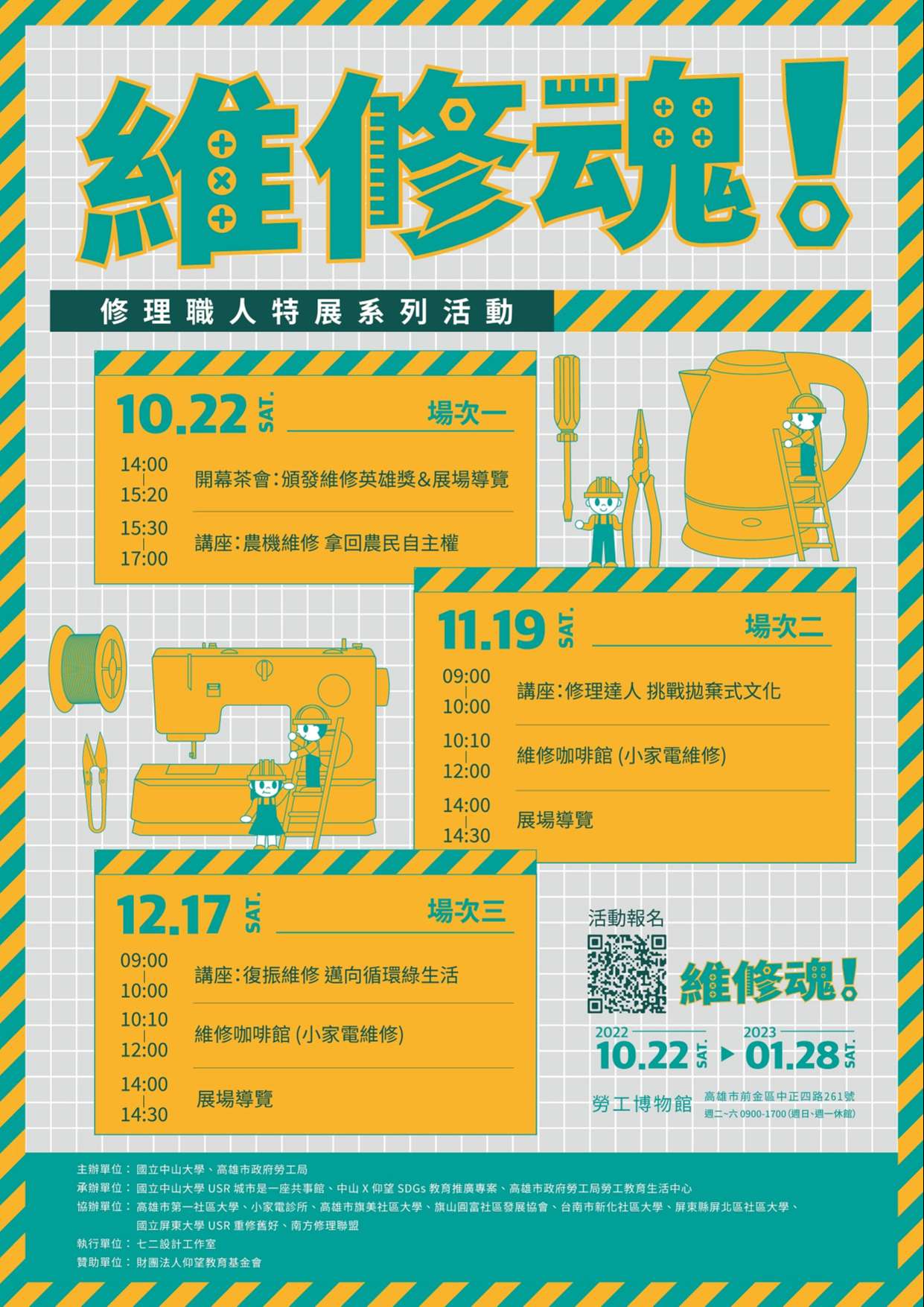 一、本展覽於民國111年10月22日至112年1月28日假高雄市勞工博物館(高雄市前金區中正四路261號)展出,以深入淺出的方式了解維修是循環經濟的一環,與其在當代環境、經濟、社會的多重價值。