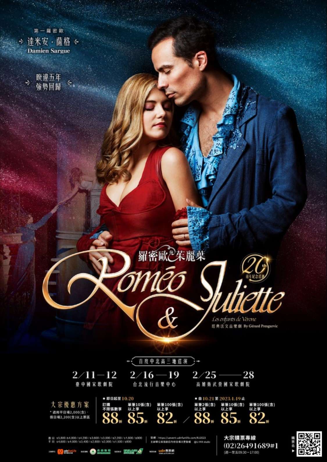 於112年2月11日(周六)起至112年2月28日(周 二)分別於臺中國家歌劇院、台北流行音樂中心、高雄衛武營國家藝術中心舉辦經典法文音樂劇《羅密歐與茱麗葉》