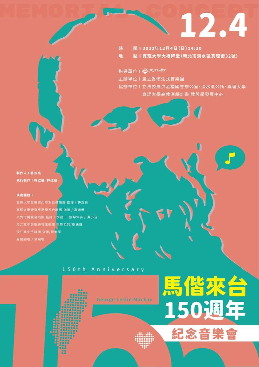 一、今年適逢馬偕博士(George Leslie Mackay)來臺宣教150週年,他在宣教、醫療和教育的領域皆有卓越而影響深遠的貢獻,為了紀念馬偕,由真理大學協辦策劃本場音樂會,講述馬偕博士在臺灣「寧願燒盡,不願朽壞」的故事。