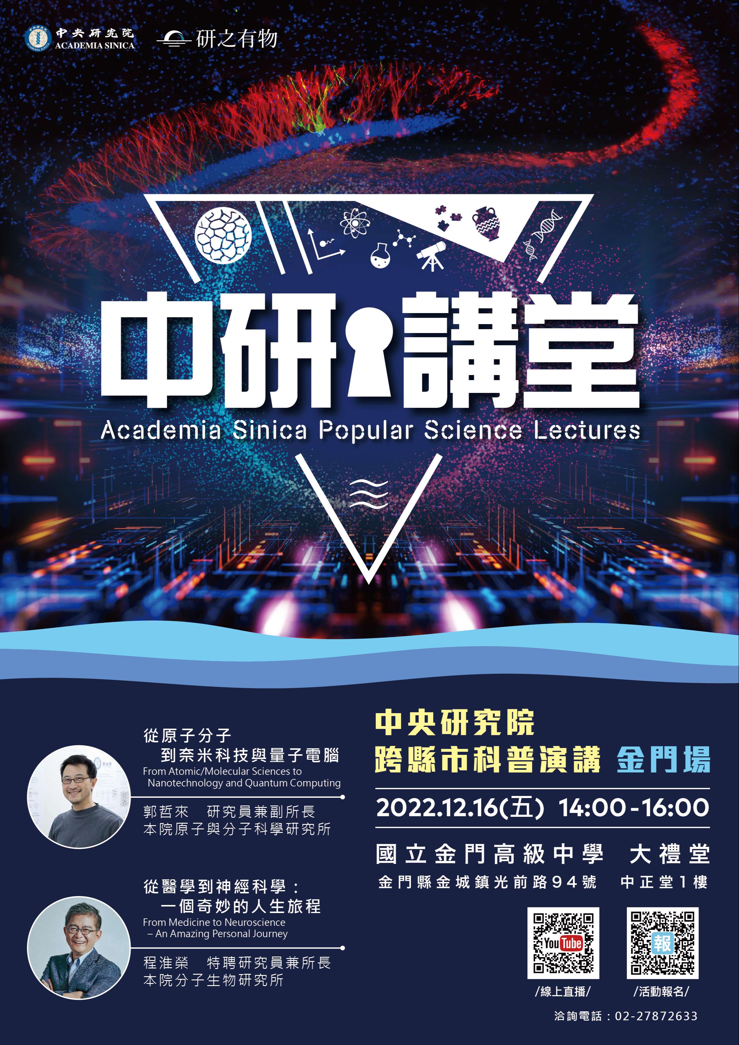 1、場次一:郭哲來研究員兼副所長(本院原子與分子科學研究所);講題「從原子分子到奈米科技與量子電腦」