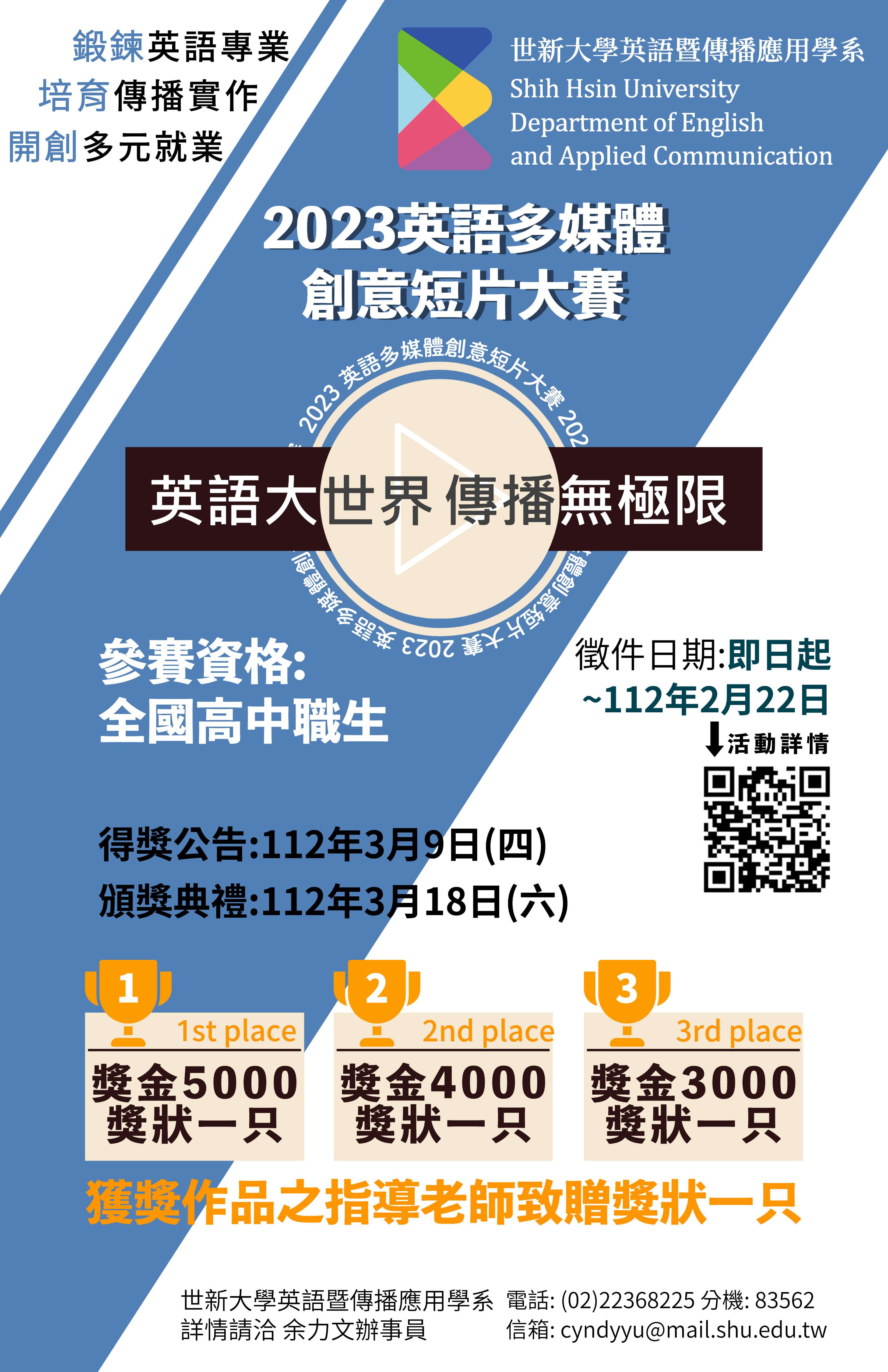 一、收件時間:即日起至112年2月22日(星期三)。 二、活動網址 三、檢附比賽辦法與海報各1份。