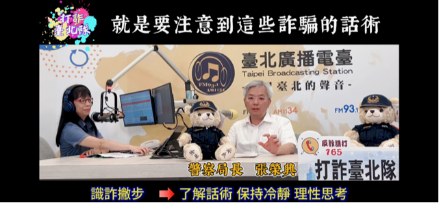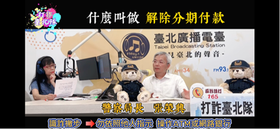 二、市府警察局於112年8月17日至臺北廣播電臺進行犯罪預防宣導,為有效提升市民識詐知能,將影片檔剪輯成30秒防詐影片共7部(雲端連結如附件),每部推播期程為2周(可視各機關單位規定自行安排調整),惠請貴校共同響應推廣,運用各式宣導管道推播行銷。