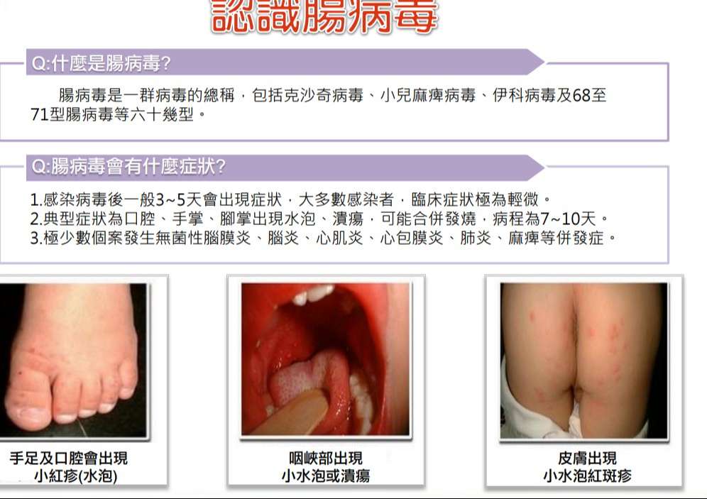 為避免校園腸病毒疫情擴大,強化校園腸病毒防治措施,請「生病不上學」生病時盡量在家休養避免前往公共場所,落實正確勤洗手;加強環境清潔及重點消毒等防疫機制,降低腸病毒傳播機率,保護學童身體健康。