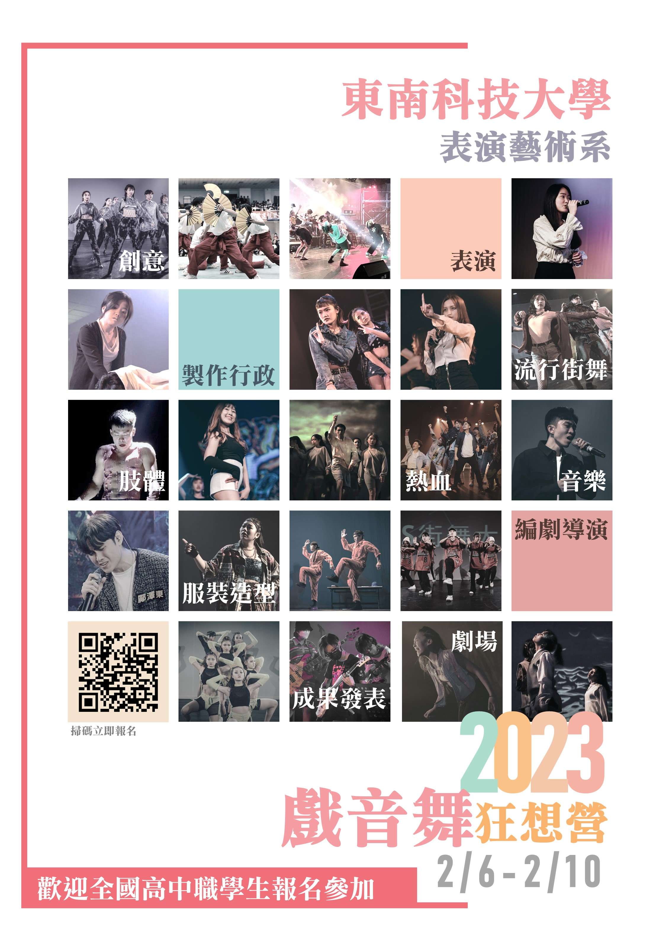 五、報名入口為(請點此)相關營隊詳情於東南科技大學表演藝術系官方網站(請點此)參閱。
