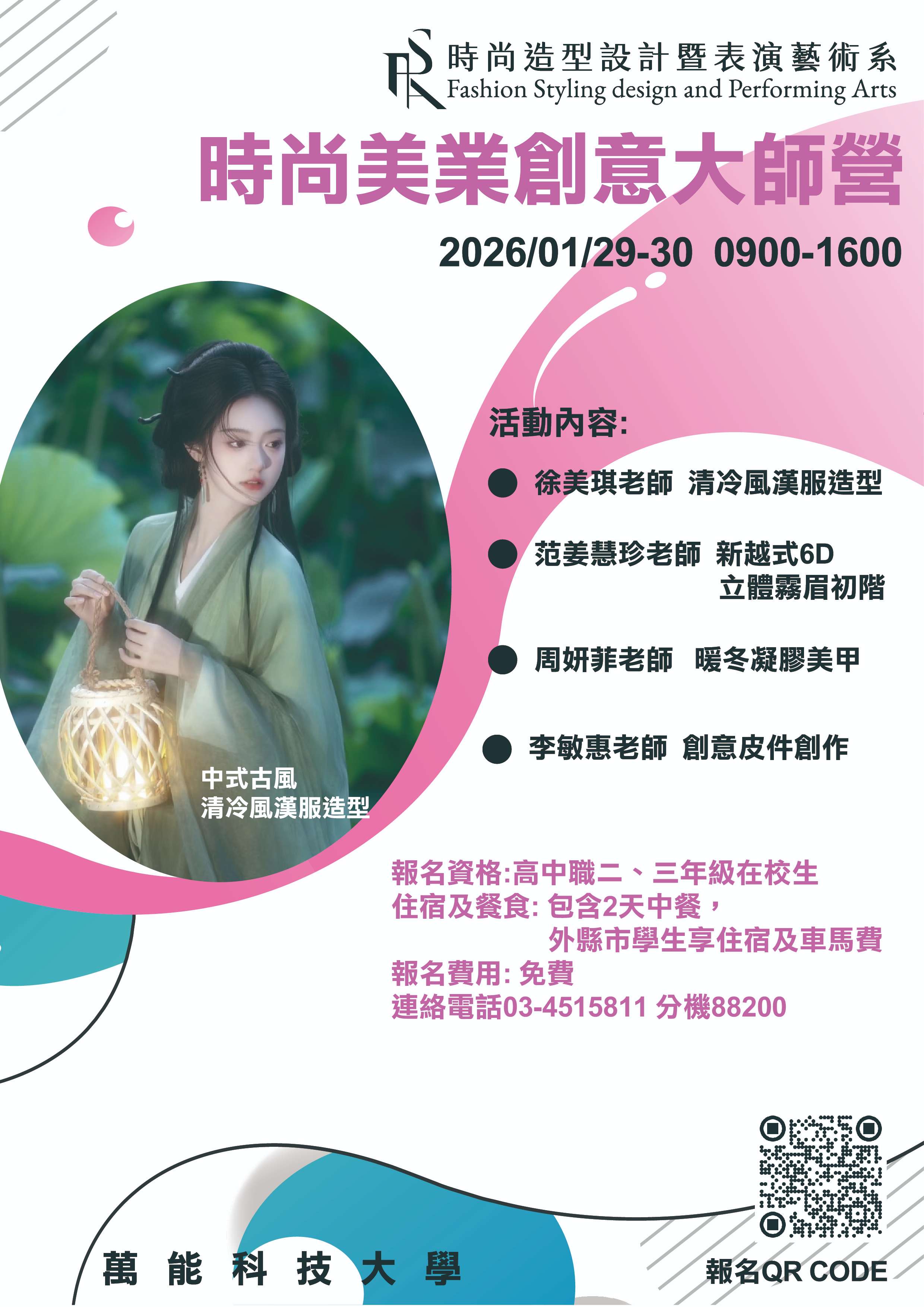 五、活動洽詢:本校時尚造型設計暨表演藝術系,聯絡電話: 03-4515811分機88200。