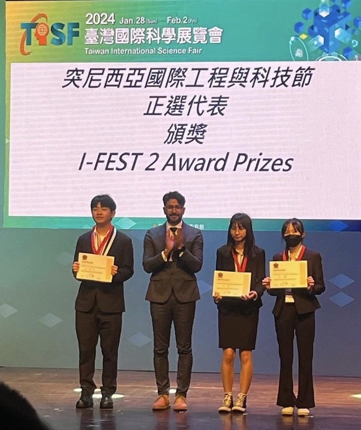 ▲黃偲安同學於2024年國際科展頒獎典禮上授獎,並獲得代表我國參加國際工程與科技節。