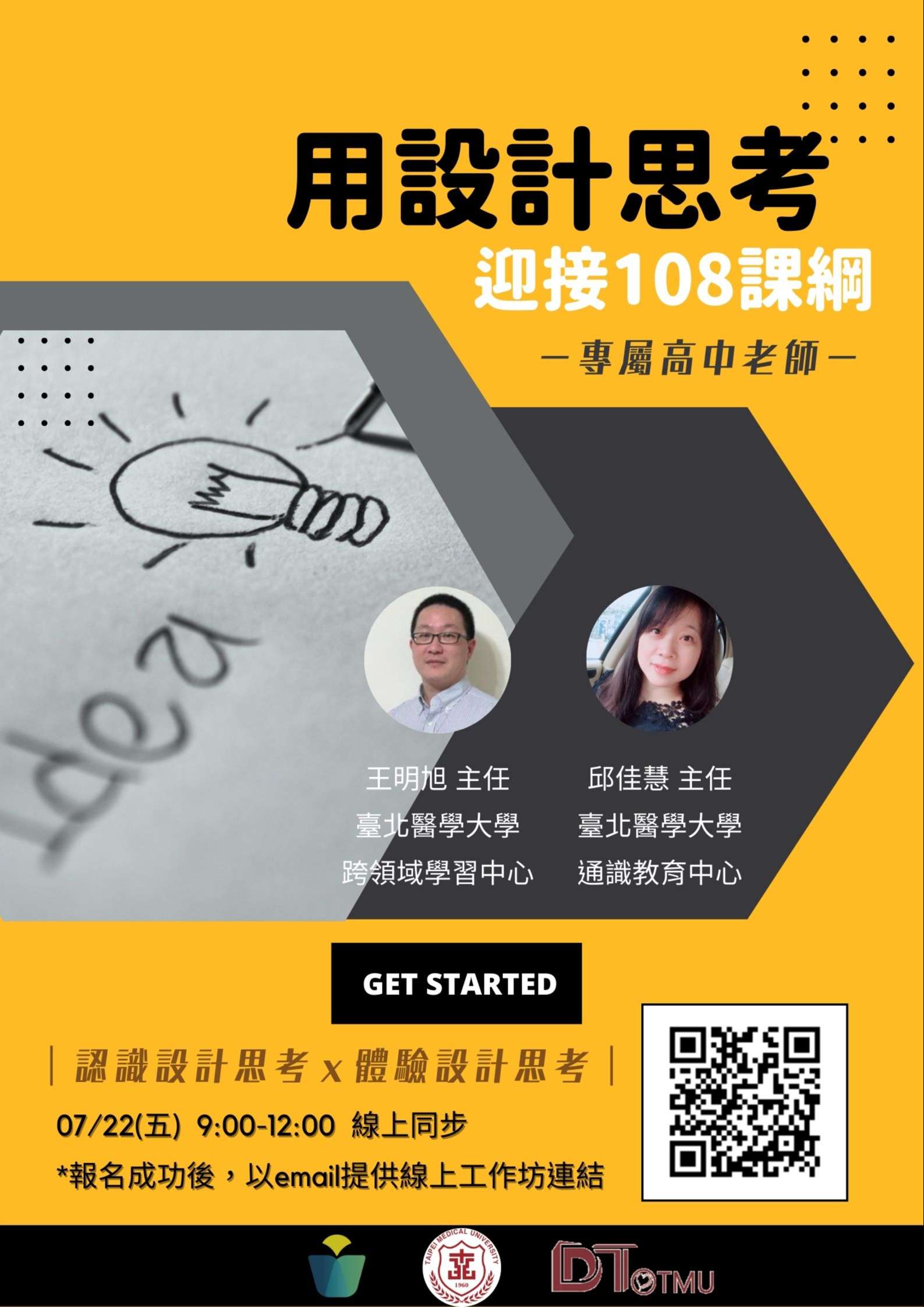 臺北醫學大學協辦教育部苗圃計畫,特舉辦「用設計思考迎接108課綱工作坊」,歡迎老師踴躍報名參加: