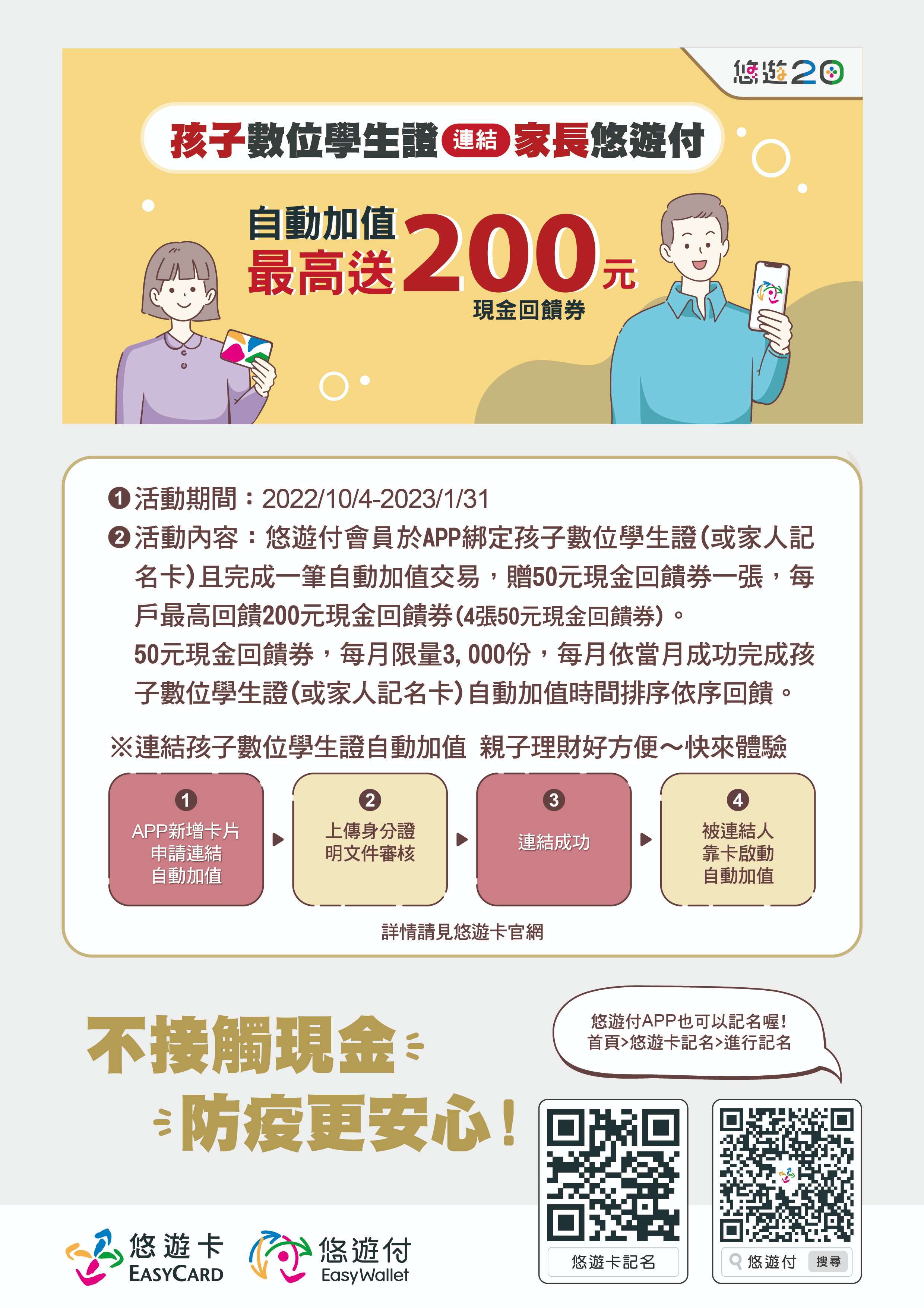 為鼓勵家長使用此服務,悠遊卡公司亦提供