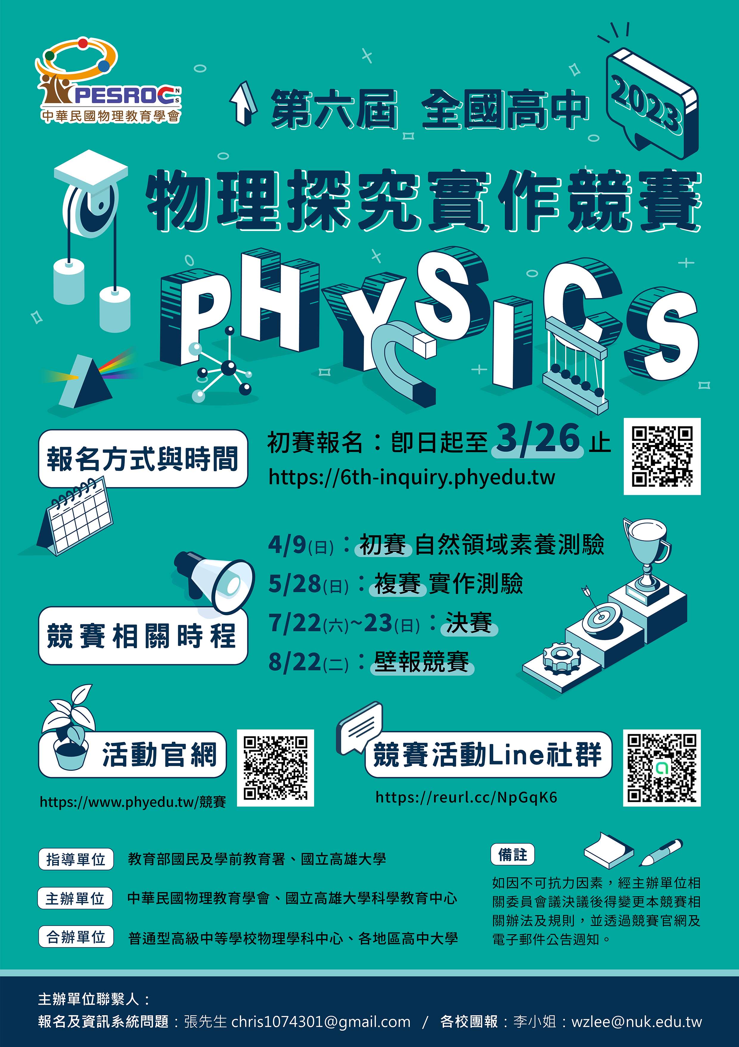 來文鼓勵同學參加「2023第六屆全國高中物理探究實作競賽」,詳閱附件。