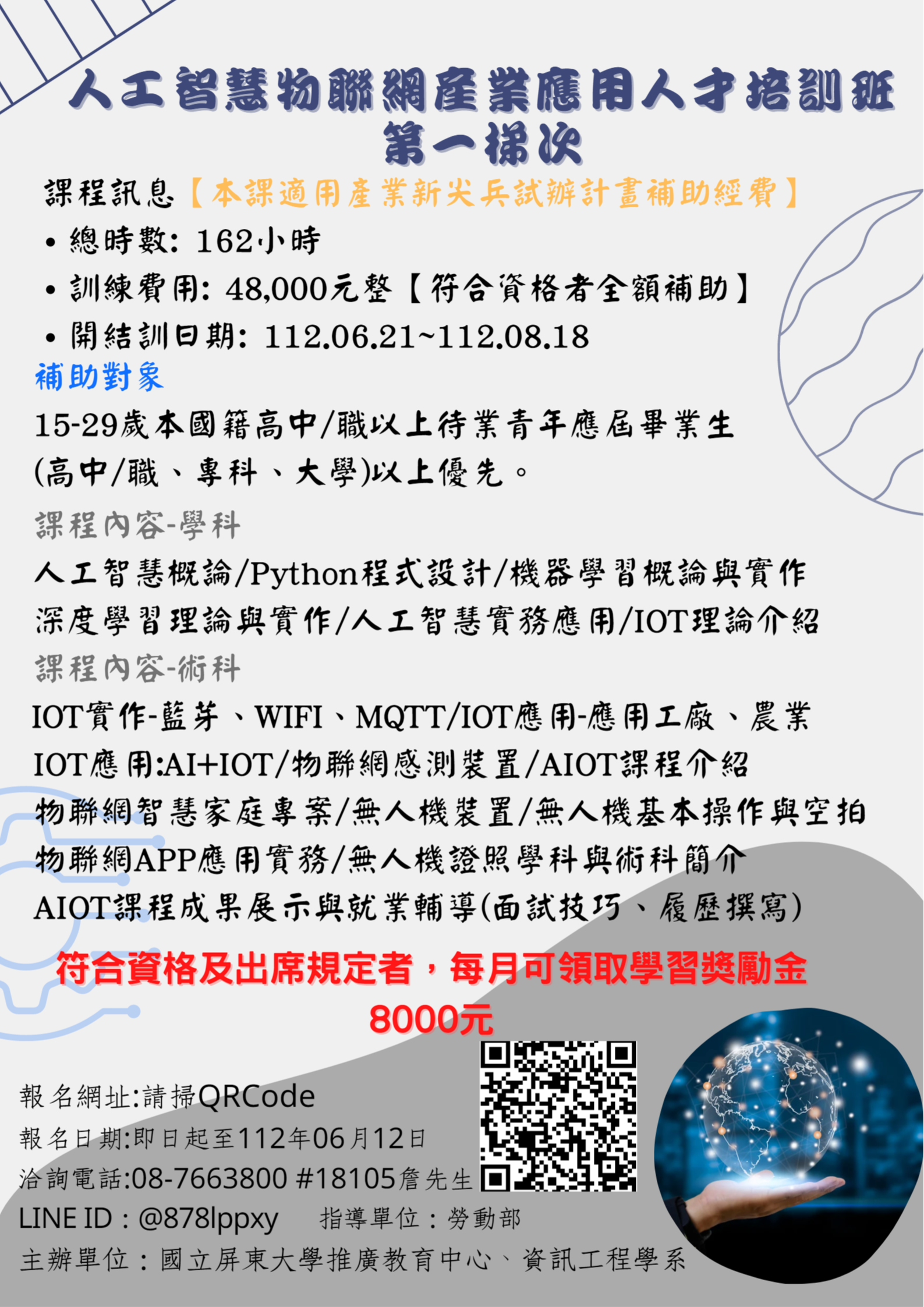 四、相關課程洽詢電話:08-7663800分機18105,推廣教育中心詹先生。