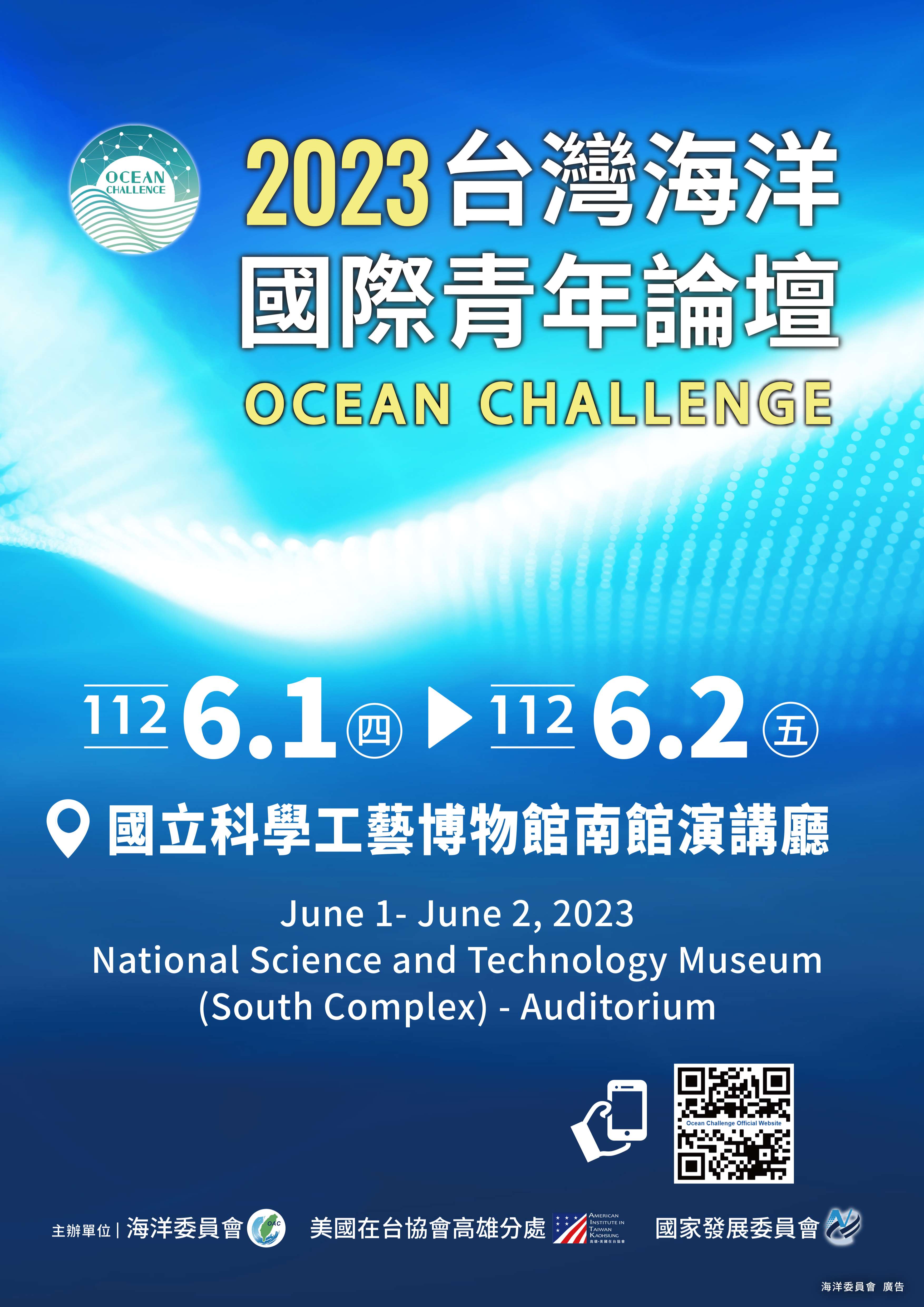 主旨:本會與美國在台協會高雄分處(AIT/K)合作辦理「2023台灣海洋國際青年論壇」,請同仁、師生踴躍報名參加,請查照。
