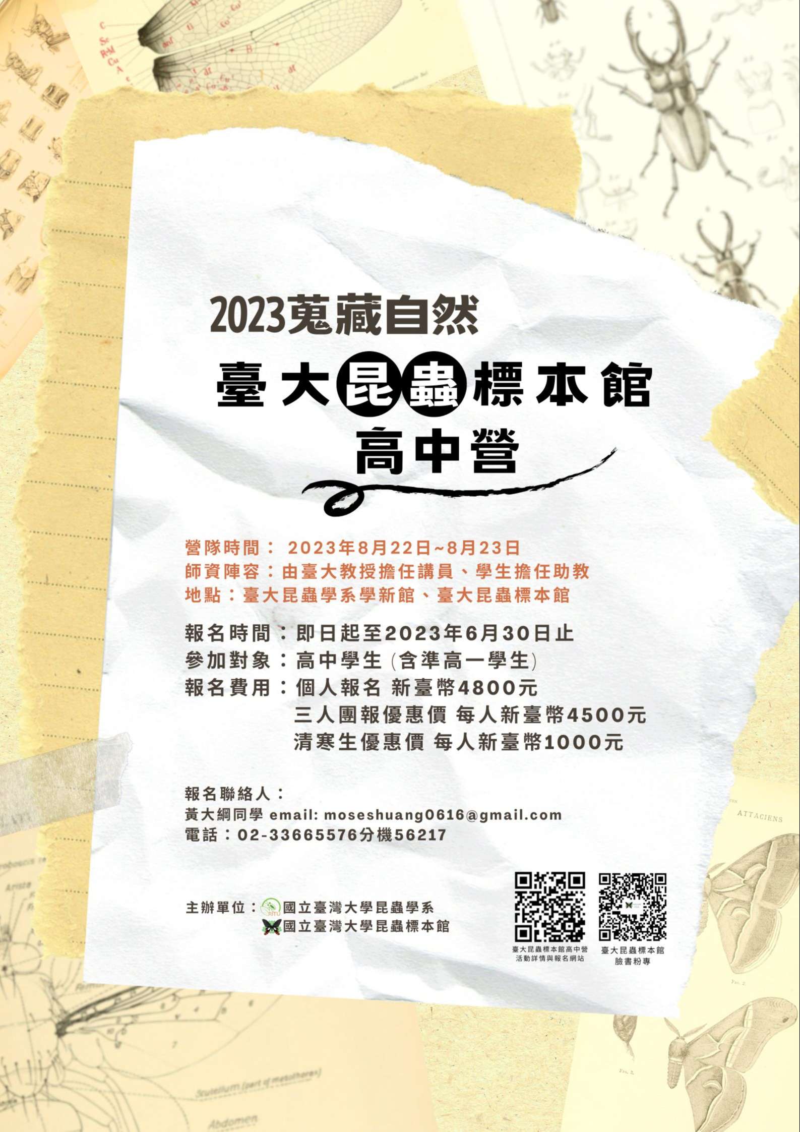 一、活動時間:2023年8月22至8月23日,活動地點為本校學新館與昆蟲館。