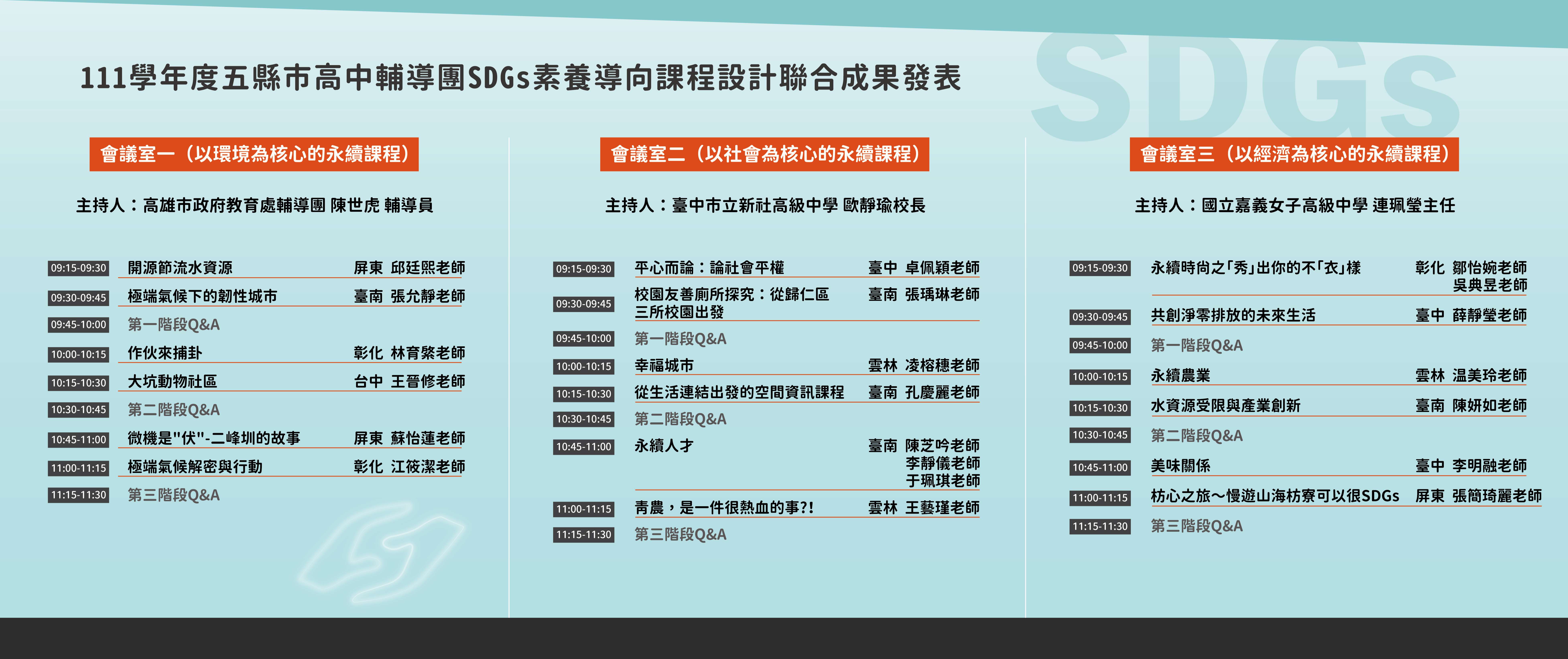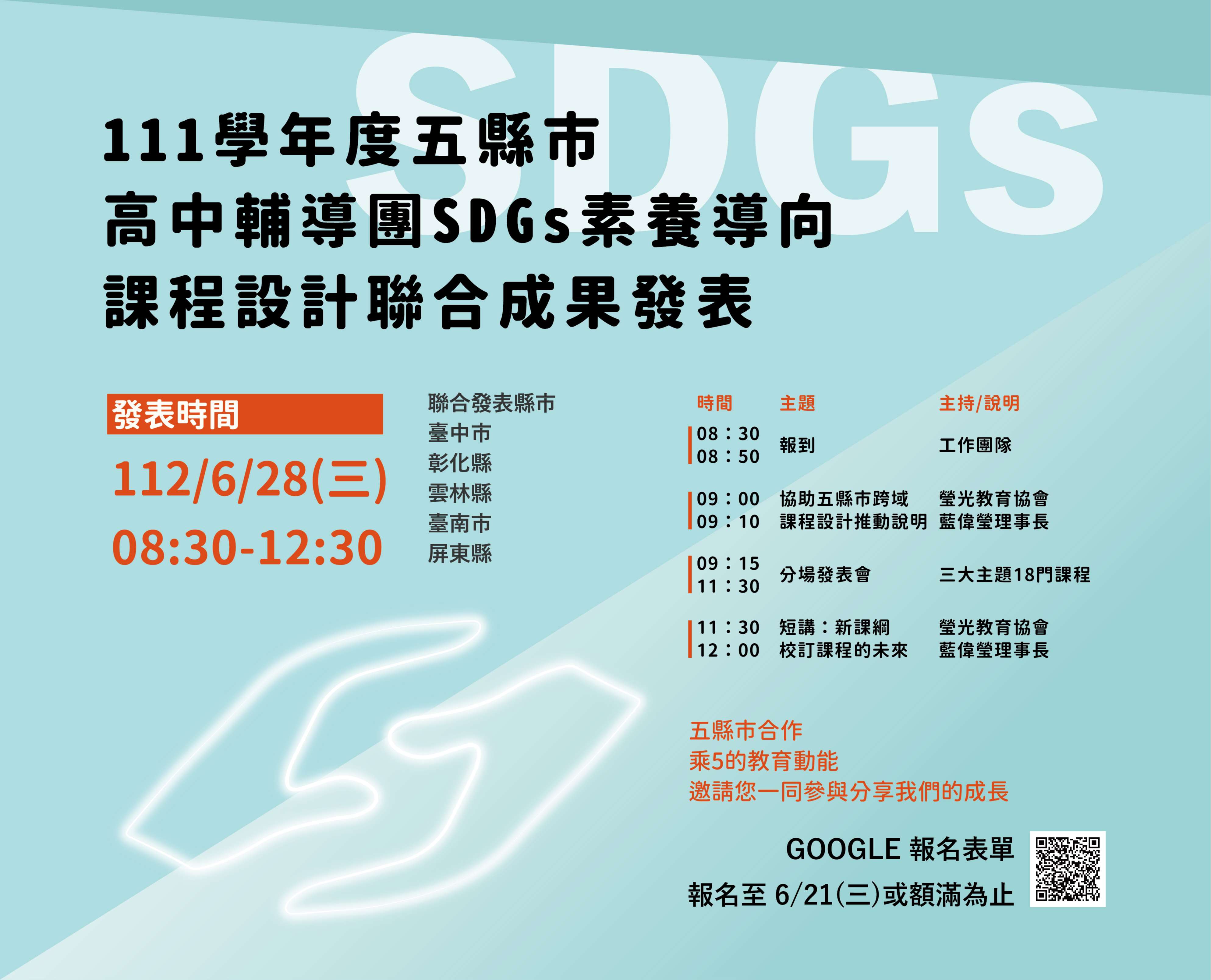 三、「五縣市高中輔導團SDGs素養導向課程設計聯合成果發表」資訊如下: