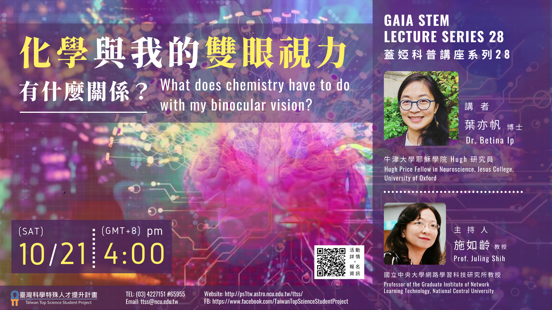 轉知 112年10月21日線上講座:《蓋婭科普講座系列28》—「化學與我的雙眼視力有什麼關係?」。