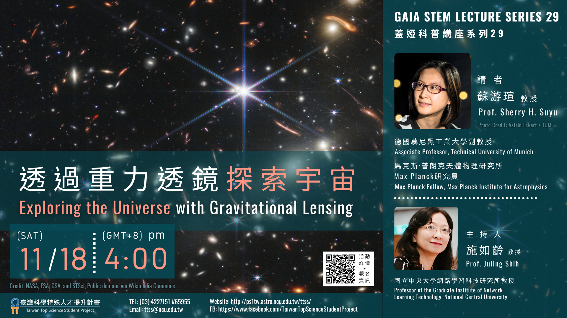 主旨:轉知112年11月18日辦理線上講座:《蓋婭科普講座系列29》—「透過重力透鏡探索宇宙」。