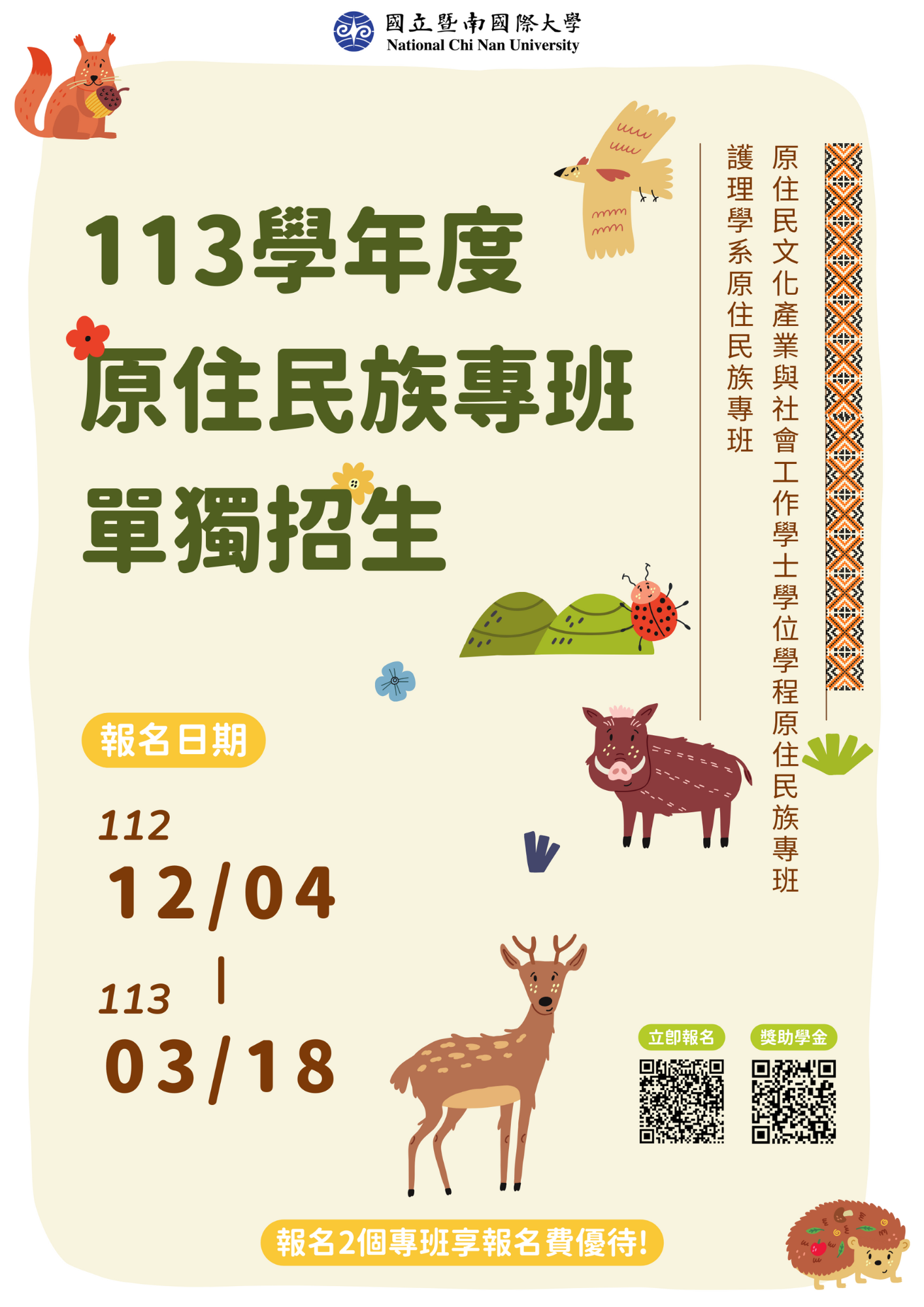 二、原住民族專班單獨招生簡章請至本校招生網頁自行下載。
