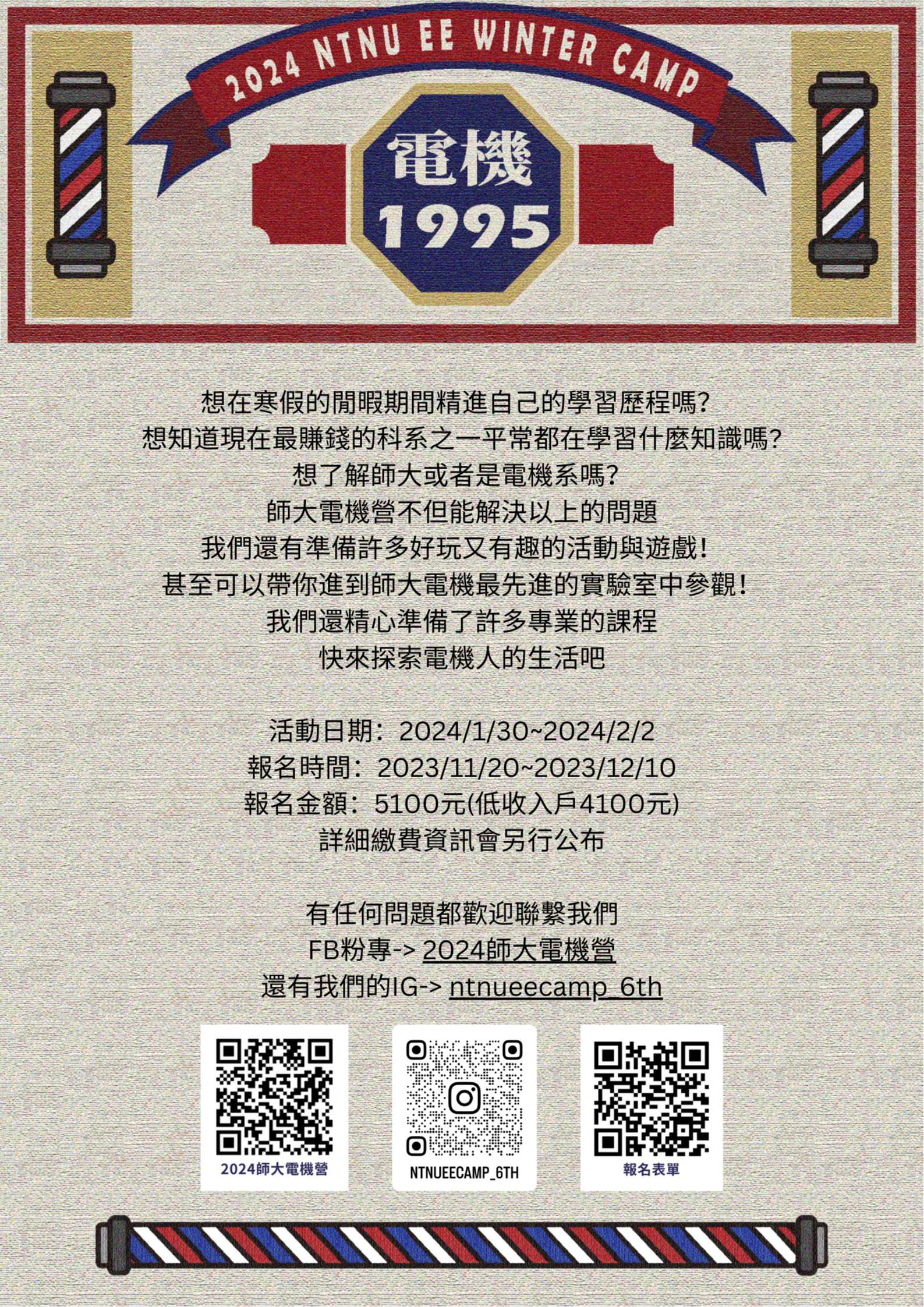 本次營隊活動日期為113年1月30日至2月2日,預計招收名 額為48名,詳細活動辦法請參考附件,亦可點選連結 請點此 或是 請點此 查詢。
