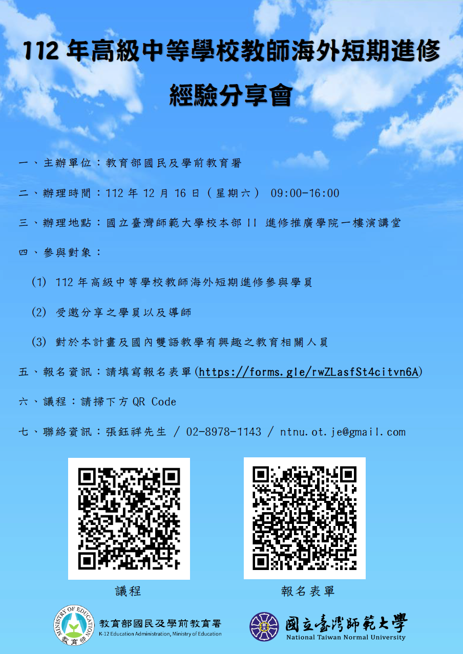 二、 辦理時間 112年 12月 16日(星期六) 9:00-16:00