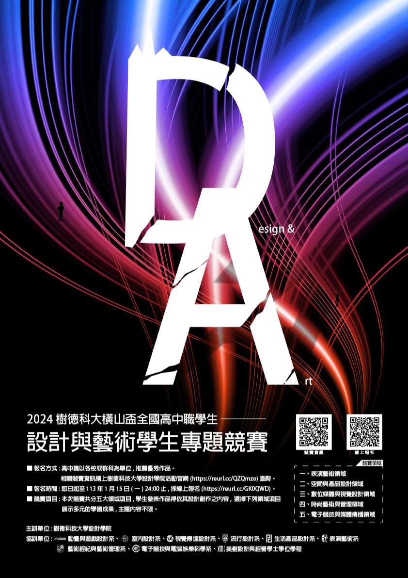 主旨:轉知設計學院舉辦「2024樹德科大橫山盃全國高中職學生設計與藝術學生專題競賽」活動。