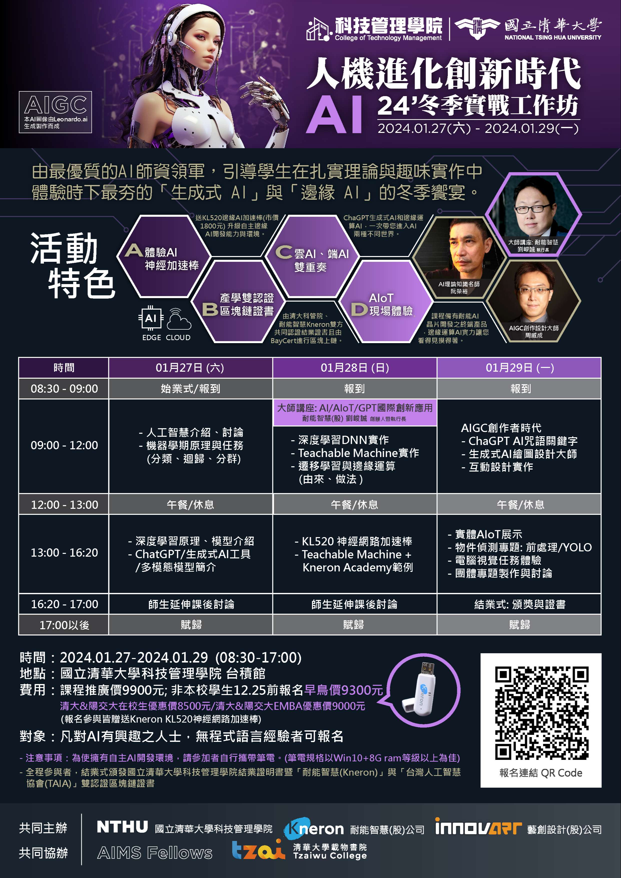 二、為期三日的工作坊,邀請到最優質的AI師資領軍,引導學 生在扎實理論與趣味實作中,體驗時下最夯的「生成式 AI」與「邊緣AI」的冬季饗宴。