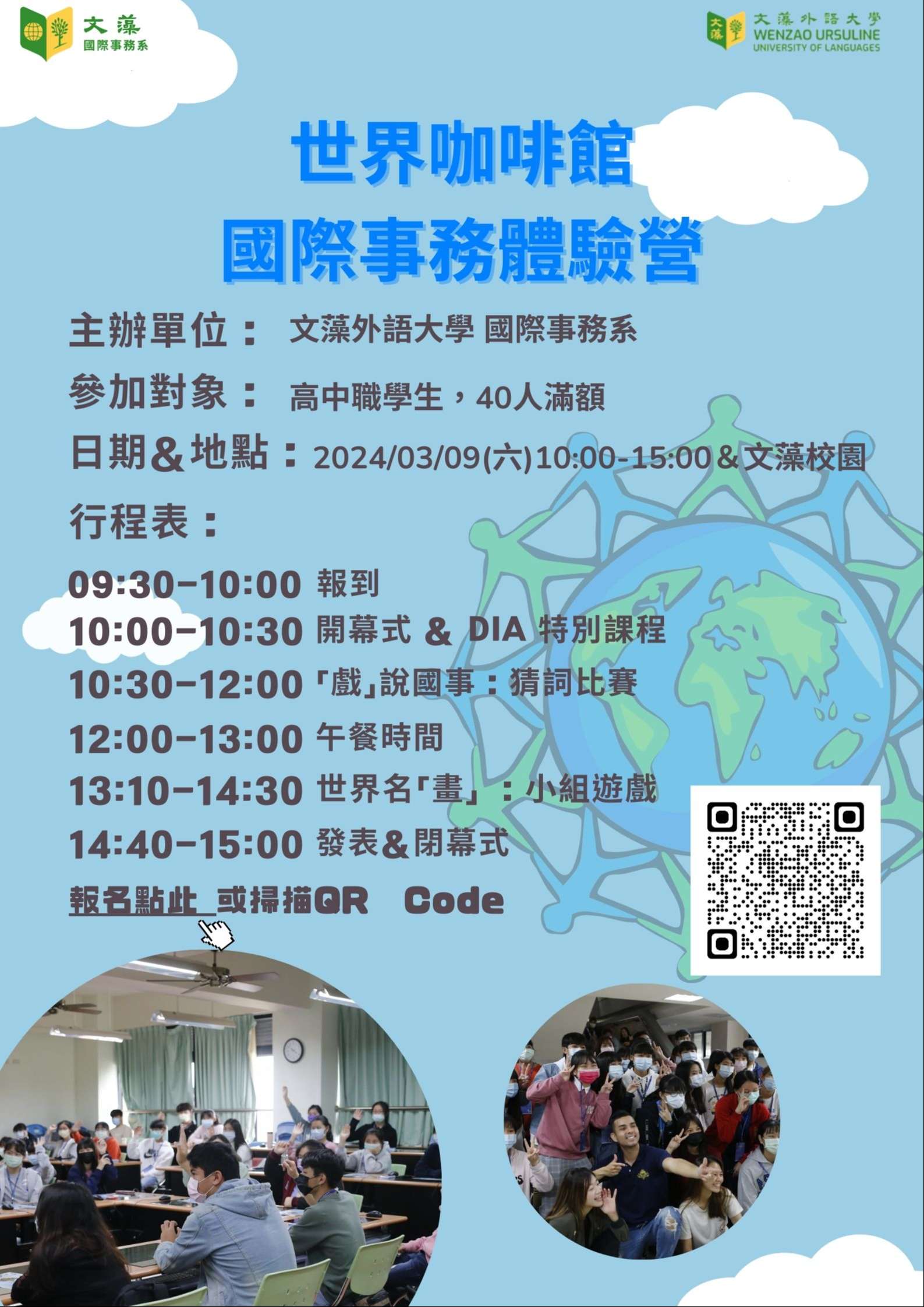 一、為提供高中職學子認識國際事務知識,增廣國際文化視 野,提升英語能力之機會,藉此體驗大學多元化的學習氛 圍,以協助提前規劃未來升學方向,特辦理旨揭活動。