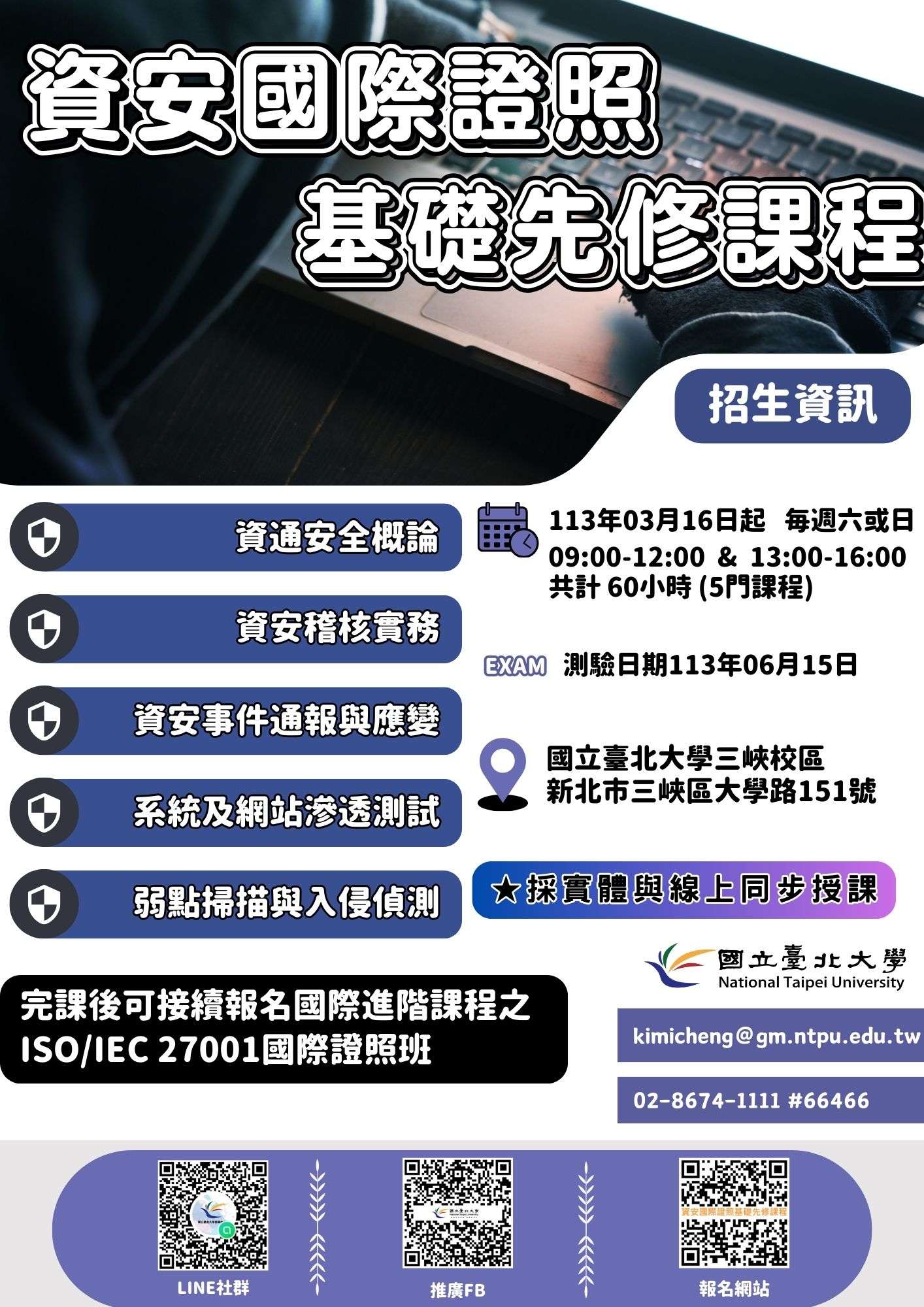 國立臺北大學辦理「第1期資安國際證照基礎先修課程」: