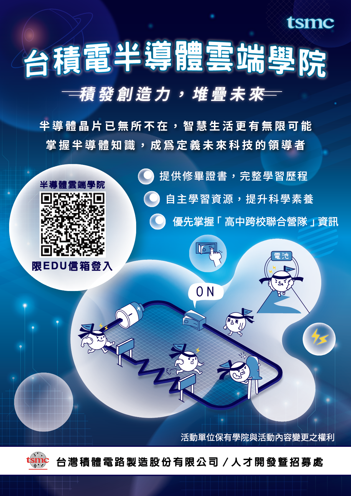 台灣積體電路製造股份有限公司(以下簡稱台積電)辦理之「台積電半導體雲端學院」: