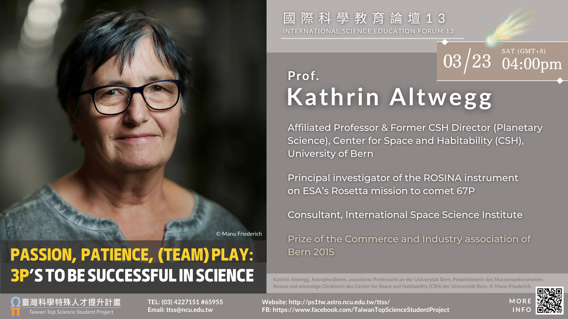 (一)講者:Prof. Kathrin Altwegg(伯恩大學)。