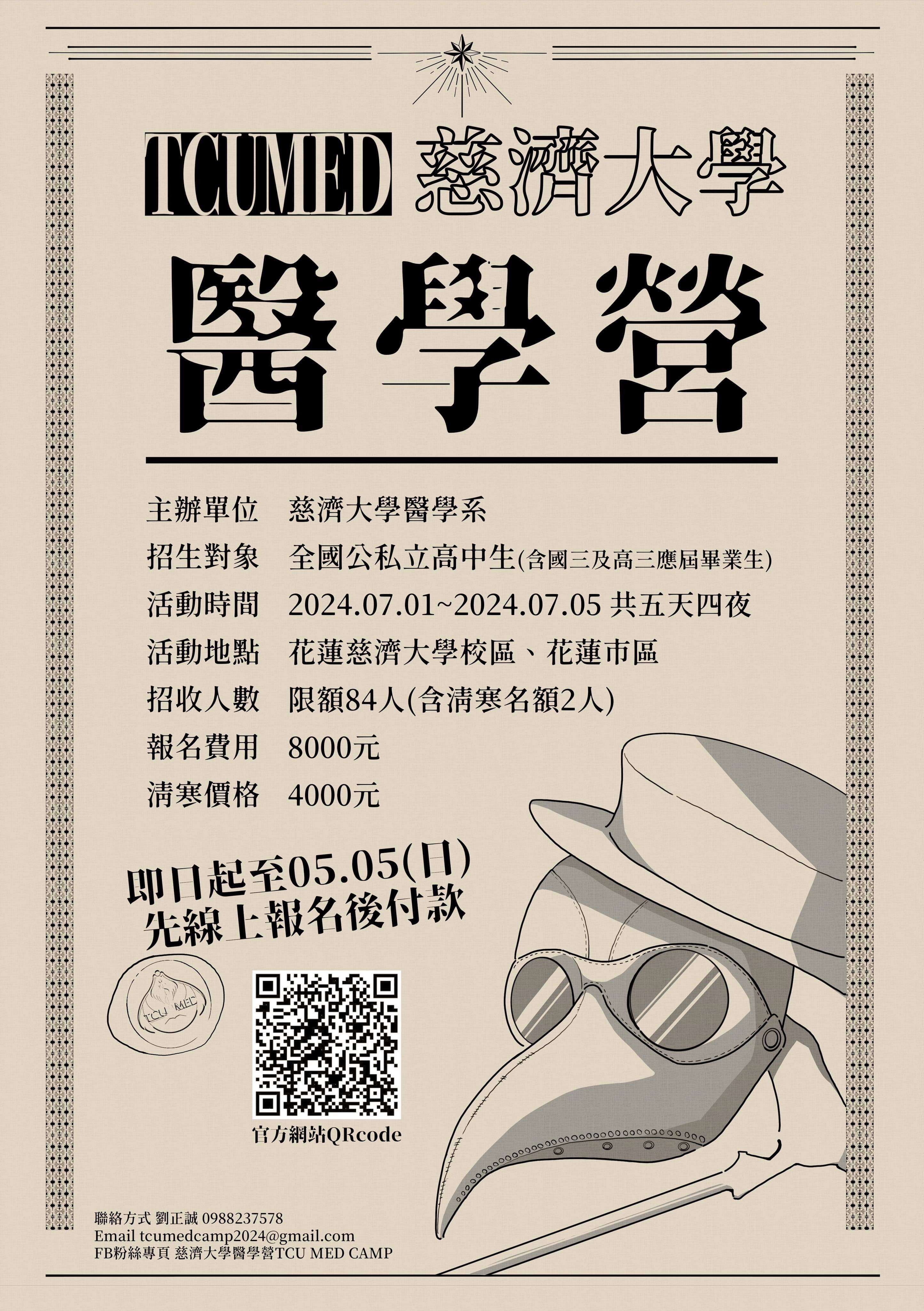 五、詳情請洽慈濟醫學營臉書粉絲專頁“慈濟大學醫學營 TCU MED CAMP“或至官方網站請點此。