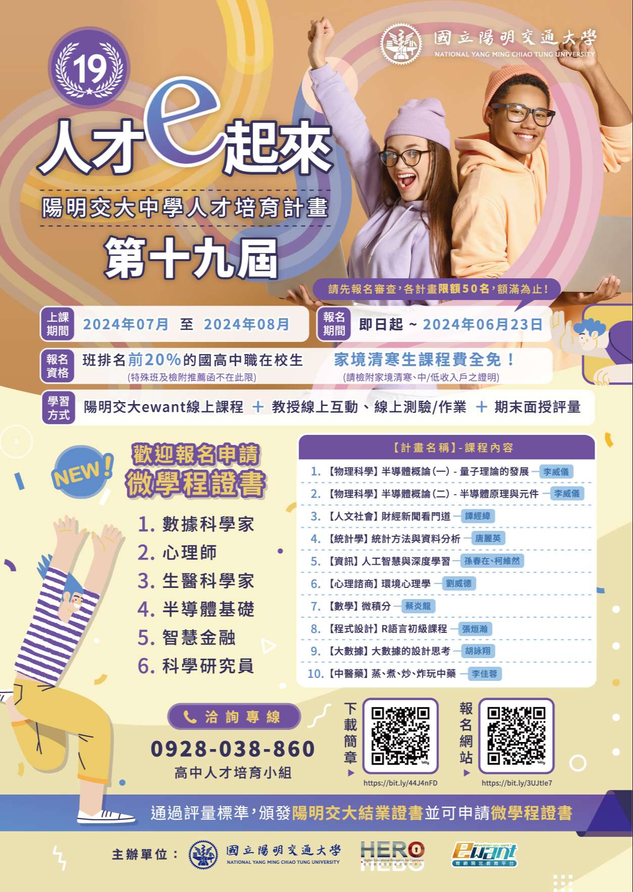 國立陽明交通大學辦理「第十九期中學人才培育計畫」: