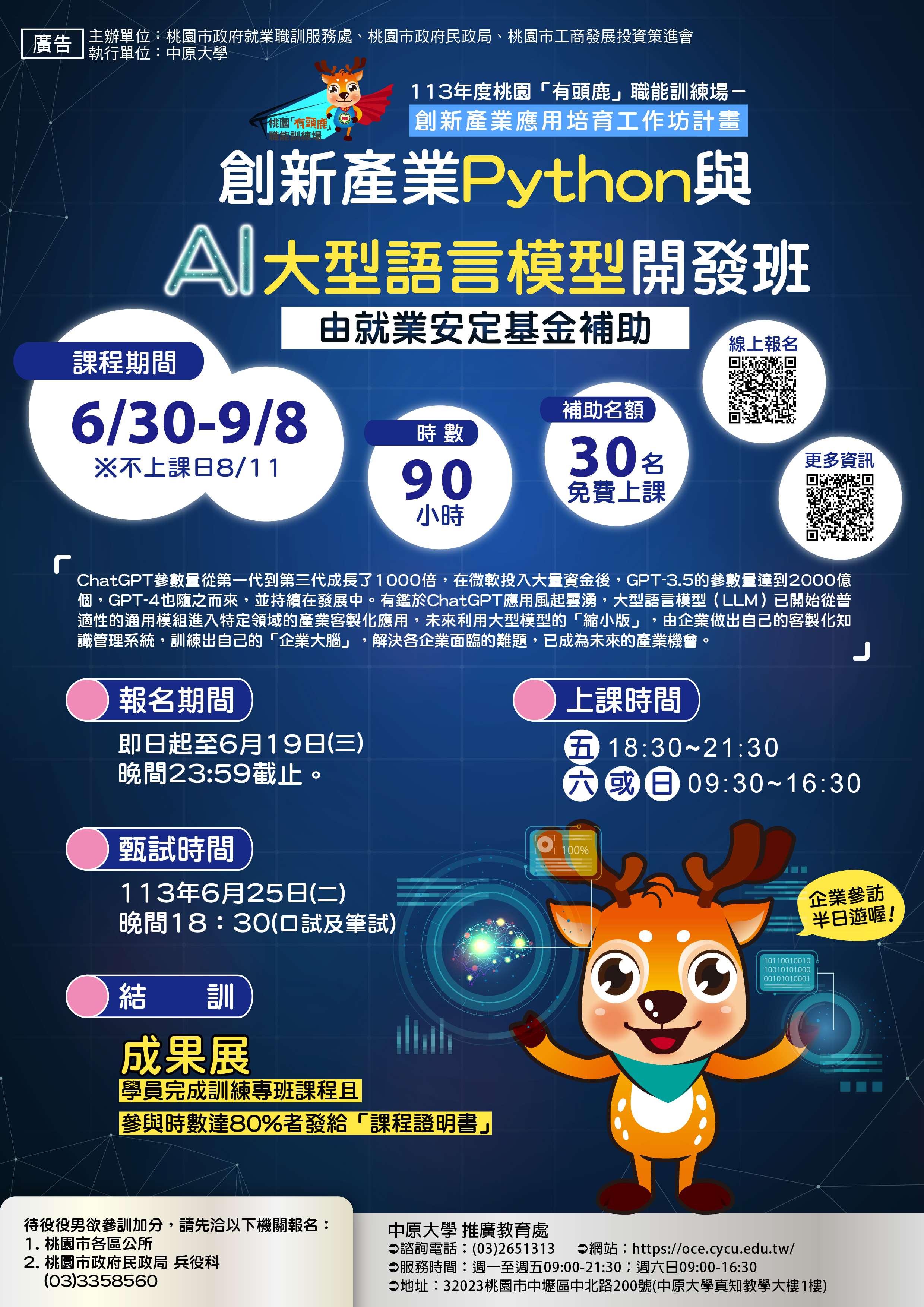 六、旨揭訓練課程資訊請至本校推廣教育處網站查閱(請點我),洽詢電話:03-2651313服務專員。