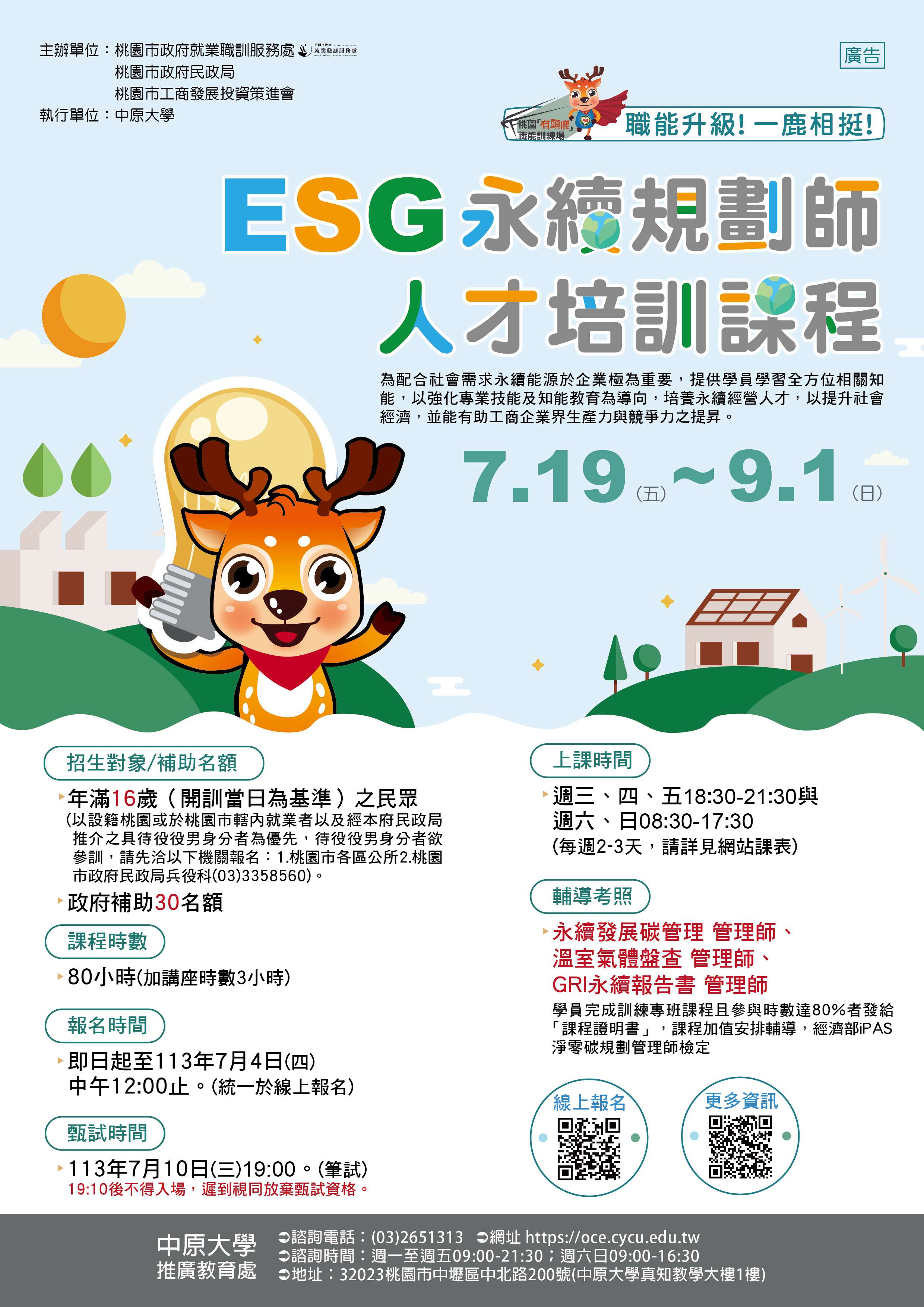 六、課程資訊請至本校推廣教育處網站查閱(請點我),洽詢電話:03-2651313服務專員。