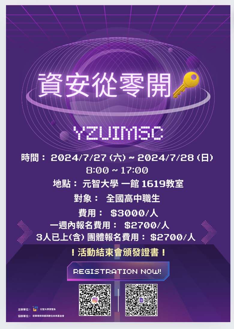 一、本校資管系擬於113年7月28日(星期六)至7月29日(星期 日)辦理資訊安全實戰營,相關資訊及報名網址詳如附件 海報。