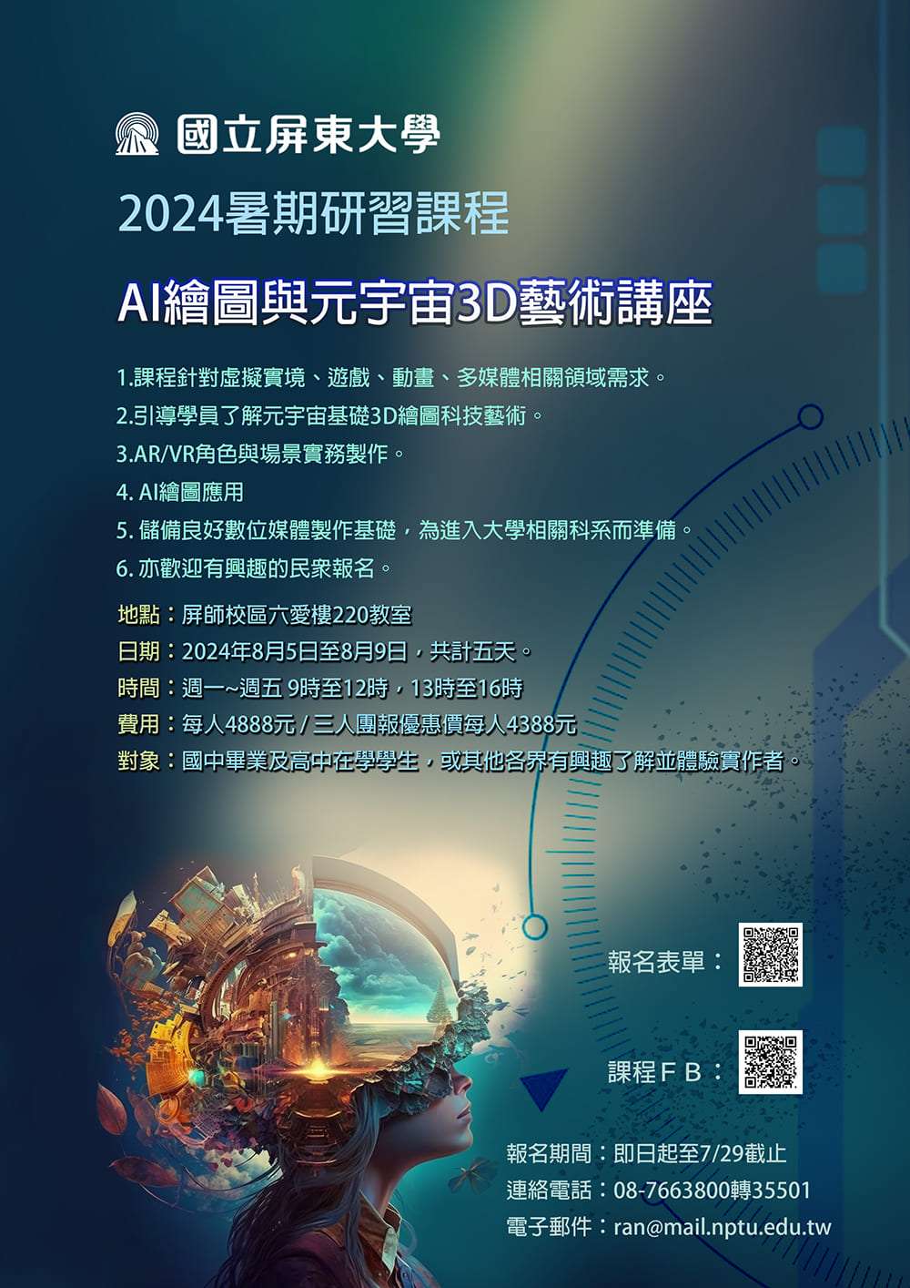 國立屏東大學辦理高中生暑期研習課程「AI繪圖與元宇宙3D藝術」: