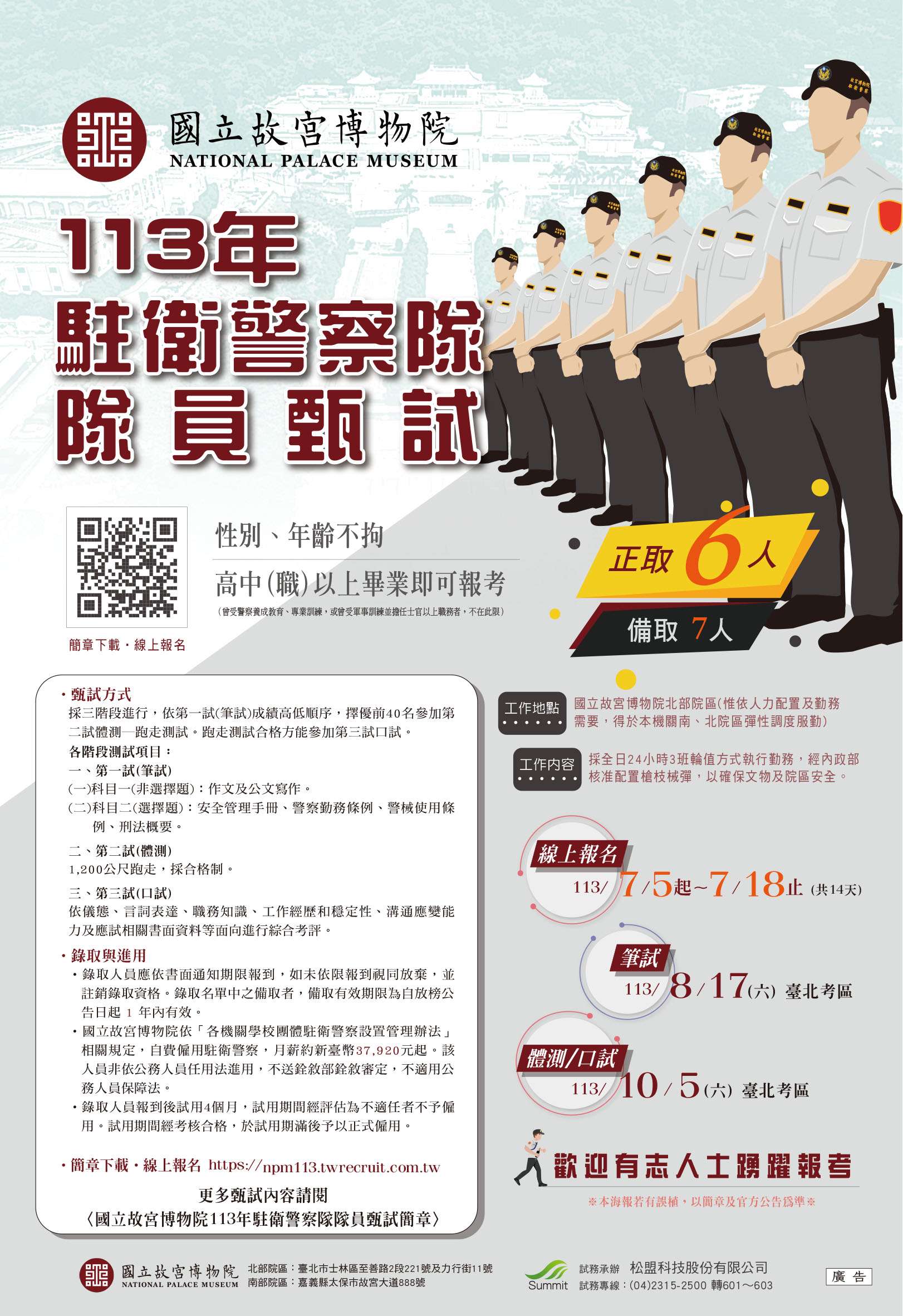 (三)第一試(筆試)測驗日期:113年8月17日(星期六)。