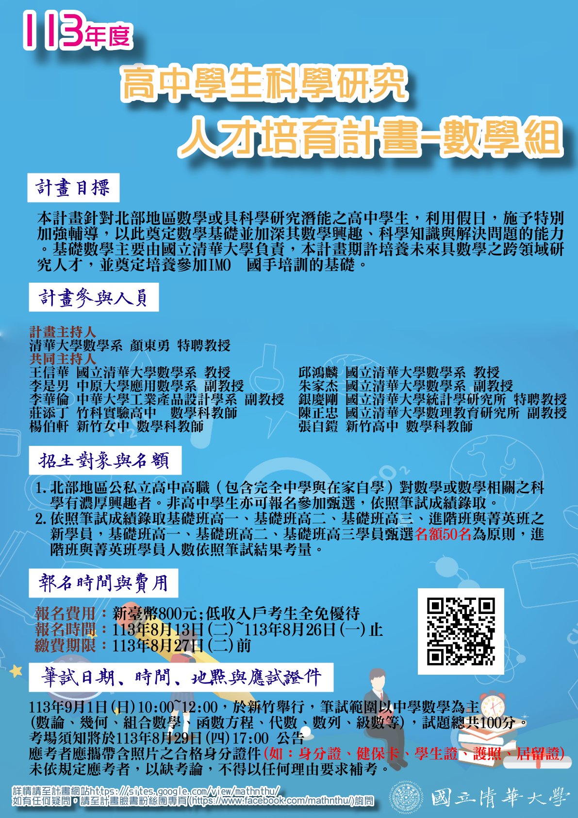 三、報名期間 : 113年8月13日(星期二)起至113年8月26日(星期一)止,詳細資訊請參閱官方網站報名,報名網址請點我。