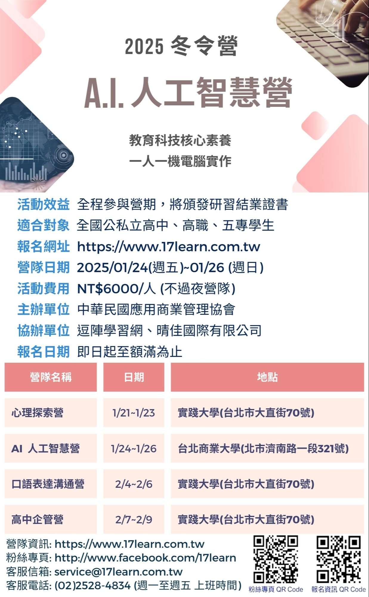 二、營隊日期:2025年01月24日(週五)~01月26日(週日)