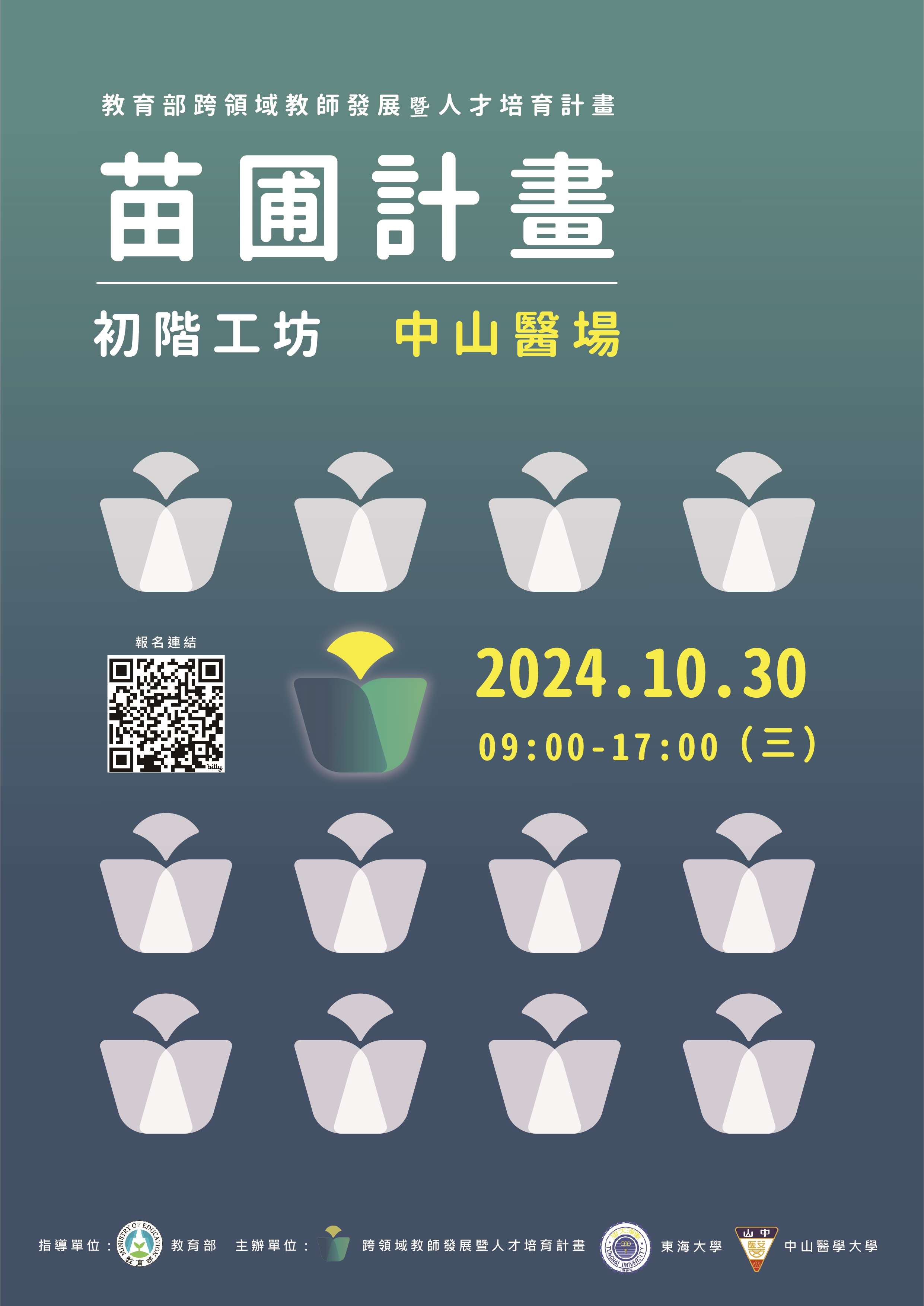 一、本次初階工作坊活動相關訊息如下: (一)活動時間:113年10月30日(星期三) 9時至17時,請於當 日8時30分至9時前往報到。 (二)活動地點:中山醫學大學正心樓0912教室。
