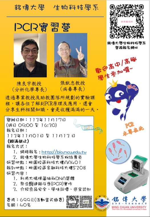 三、報名網址: (一)臉書:銘傳大學生物科技學系粉絲專頁 請點此 (二)銘傳大學生物 科技學系網頁 請點此 。