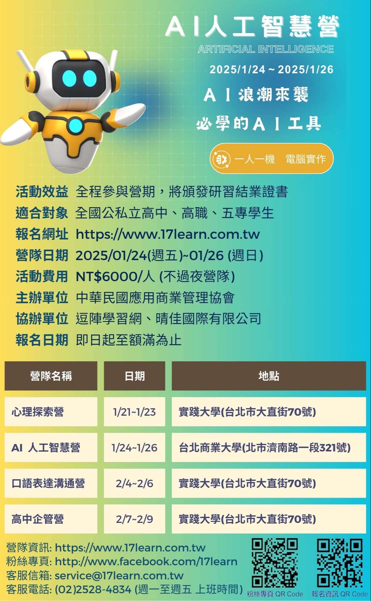 五、營隊日期: 2025/1/24~2025/1/26