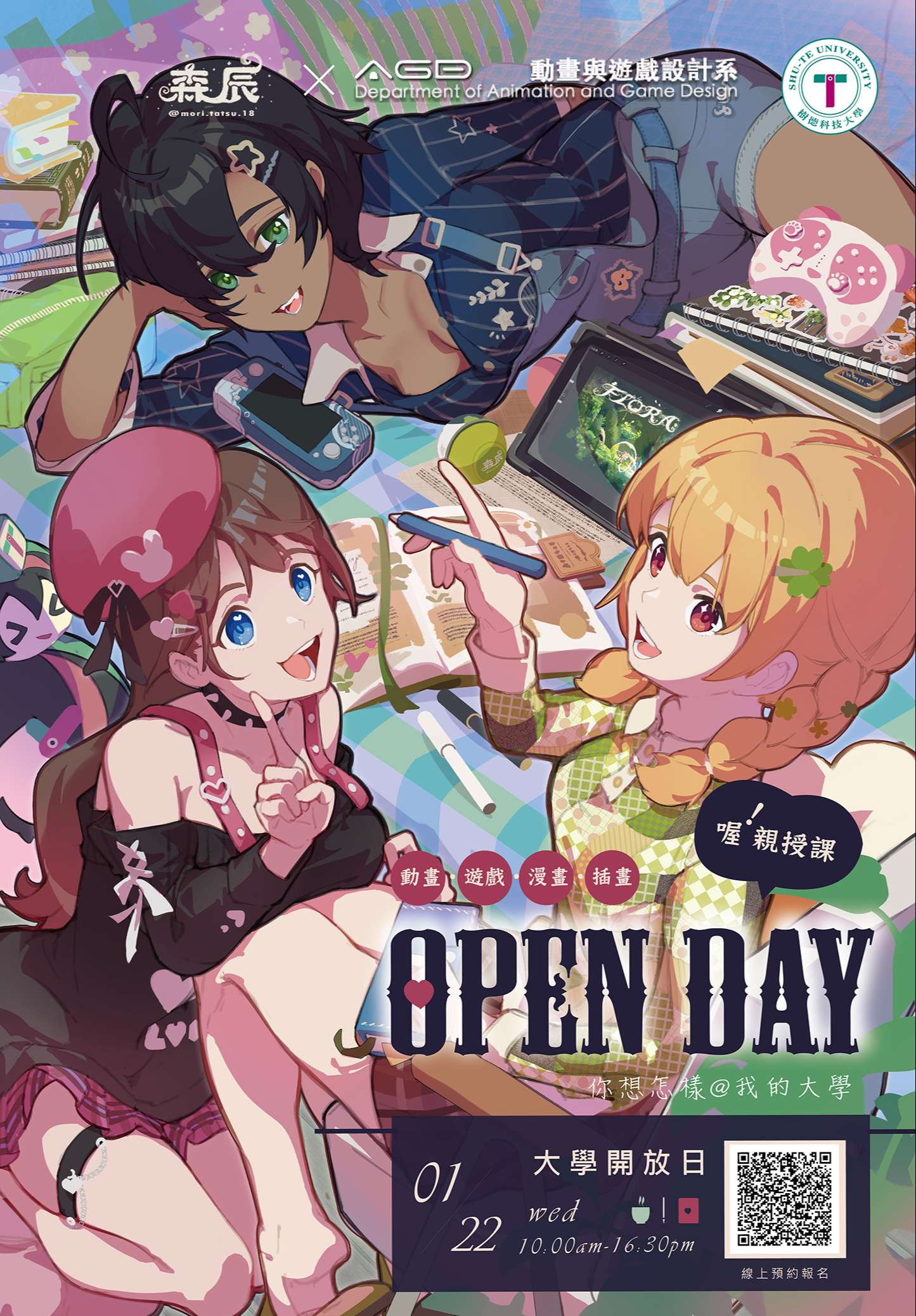 一、樹德科技大學動畫與遊戲設計系舉辦【Open Day:你想怎 樣@你的大學】大學開放日活動,邀請高中職學生前來參觀 課程並進行師生交流活動,提早探索體驗大學課程與教學 授課。