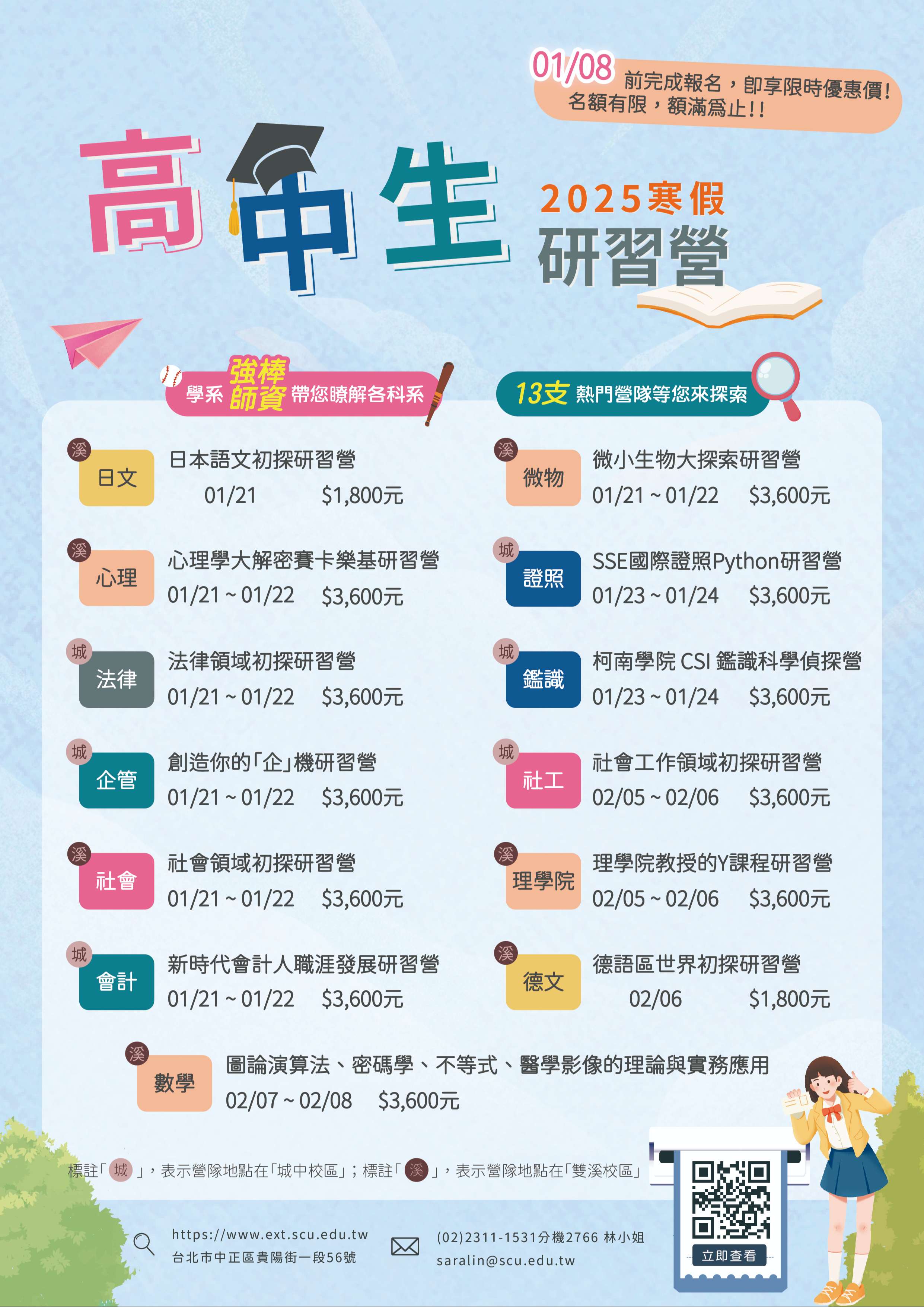 二、研習營於2025年1月8日前報名享優惠價,額滿即止。
