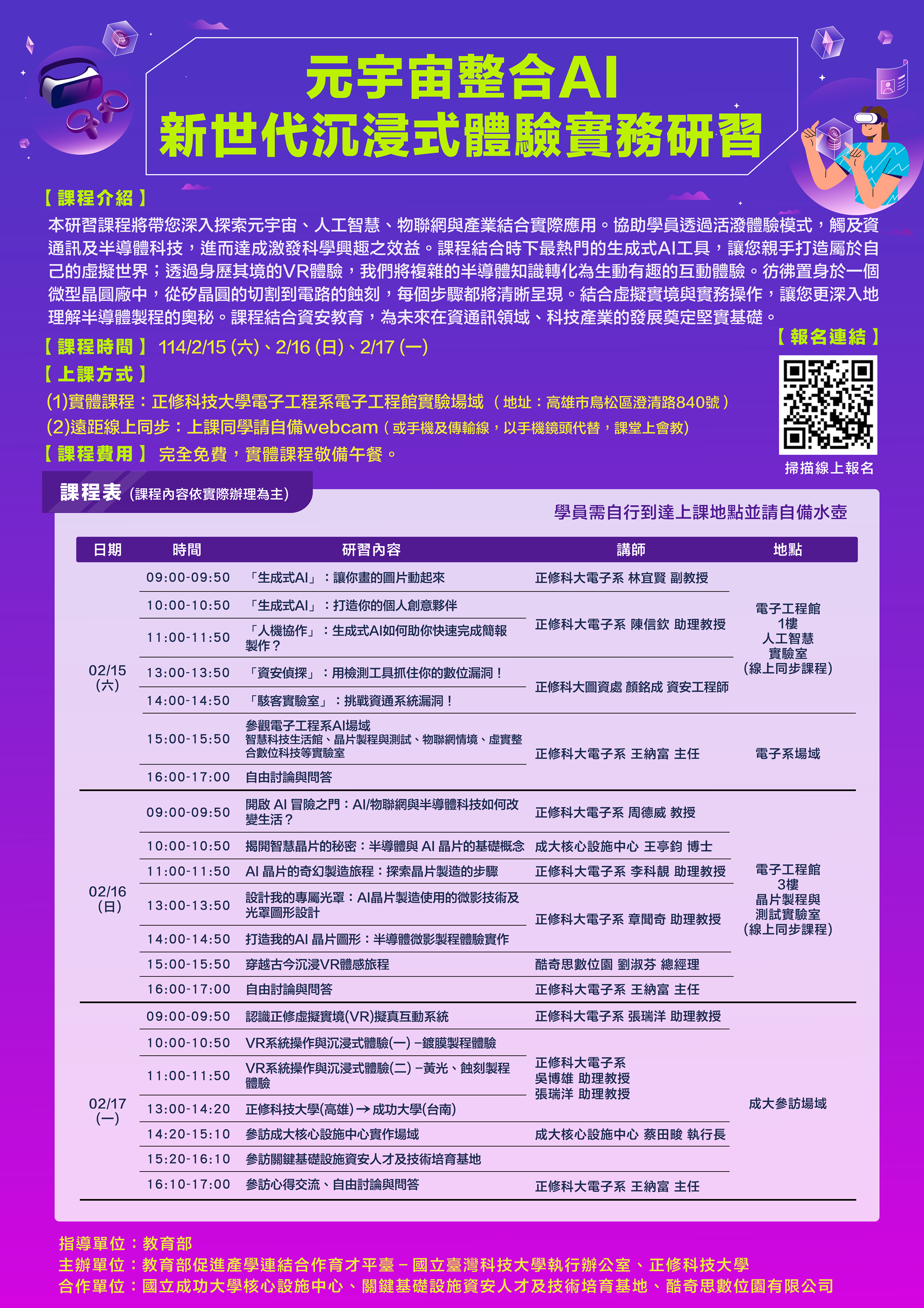 一、檢送「元宇宙整合AI-新世代沉浸式體驗實務研習」說明乙份,請依規定於期限內完成報名。