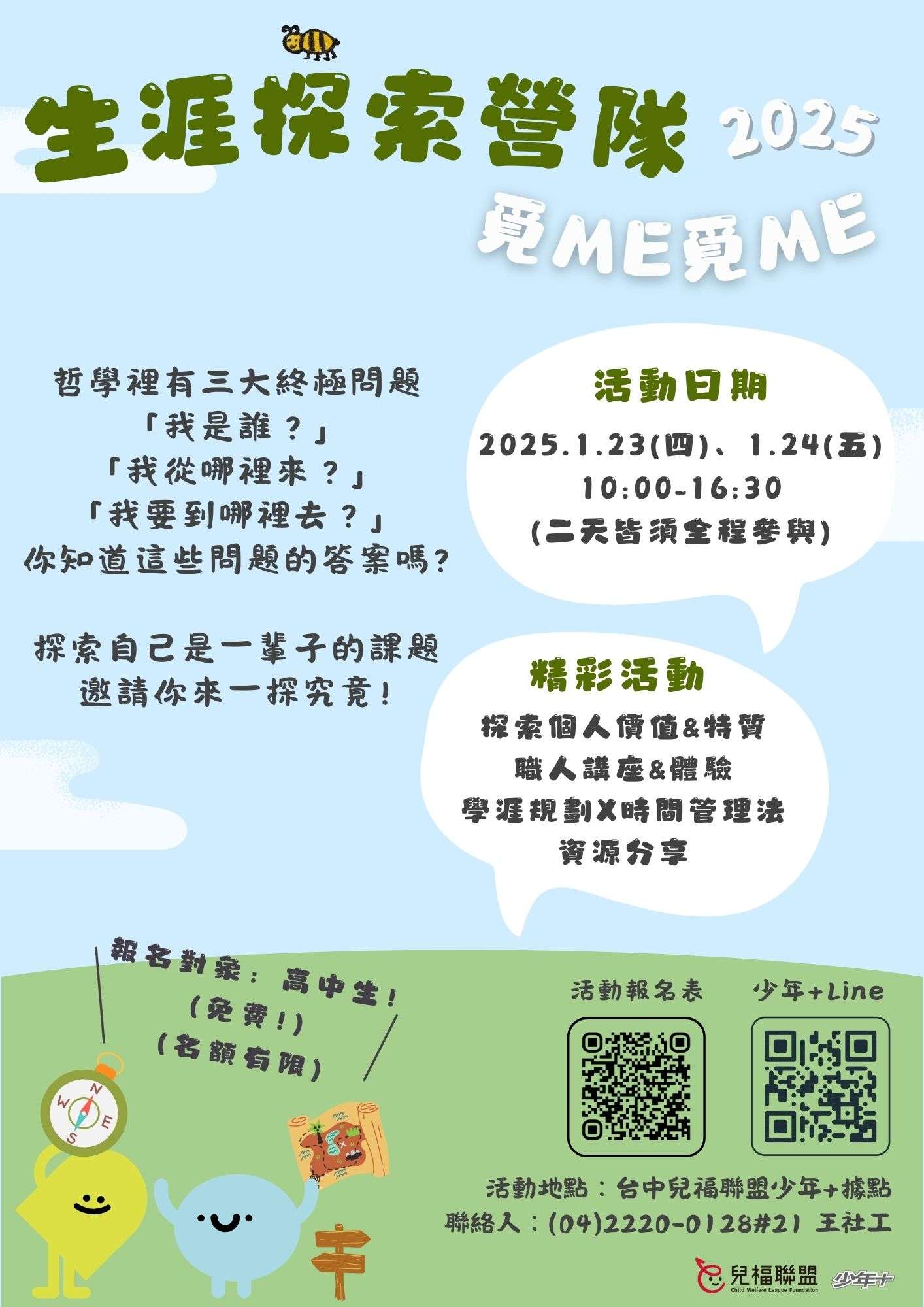 二、本期活動規劃「覓Me覓Me -生涯探索寒假營隊」,培養少 年多樣化興趣、探索個人能力,及增加正向人際互動經 驗。
