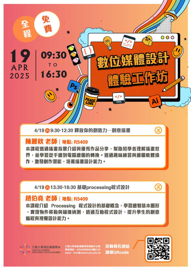 一、活動時間:114年4月19日(星期六)上午及下午各1場。