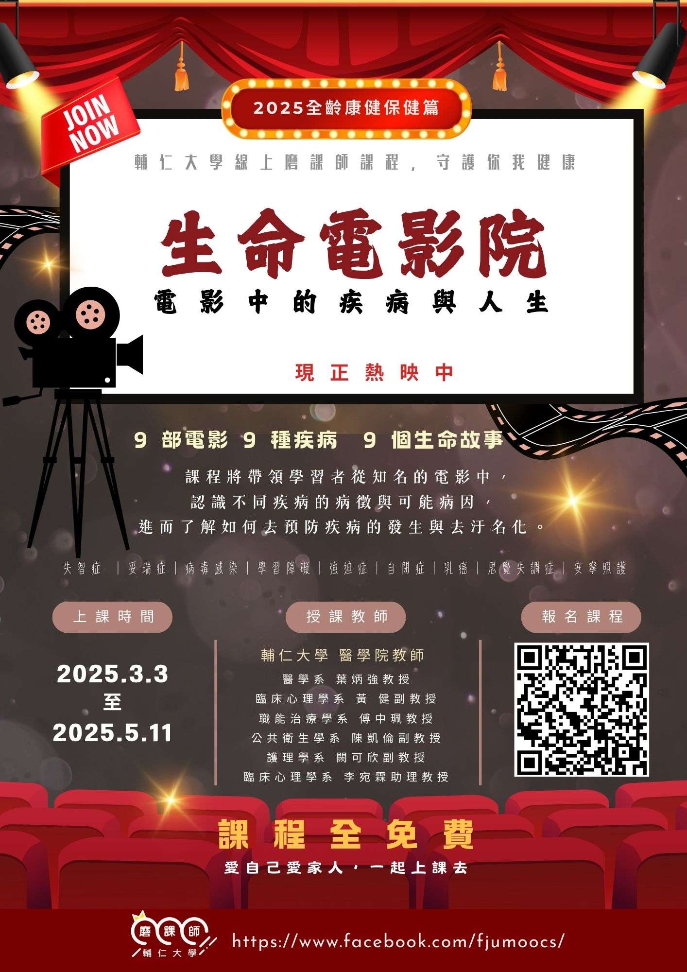 輔仁大學開設磨課師線上課程「生命電影院─電影中的疾病與人生」: